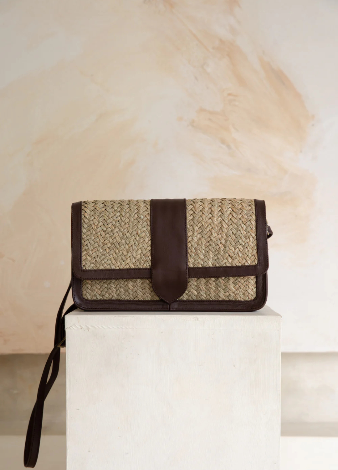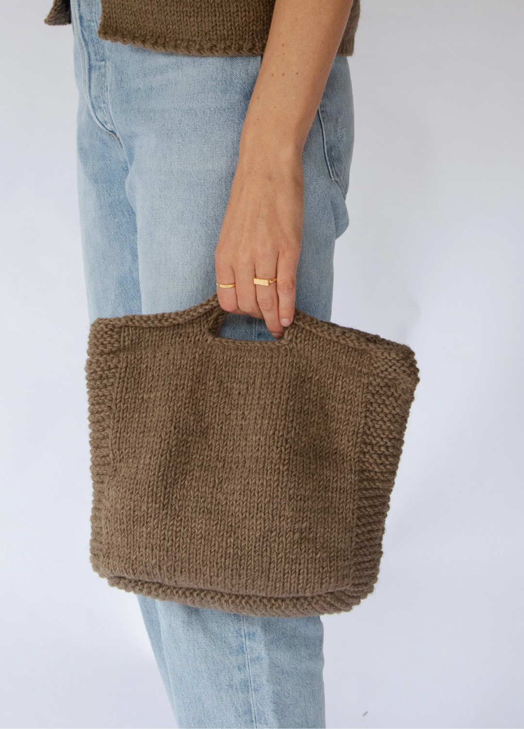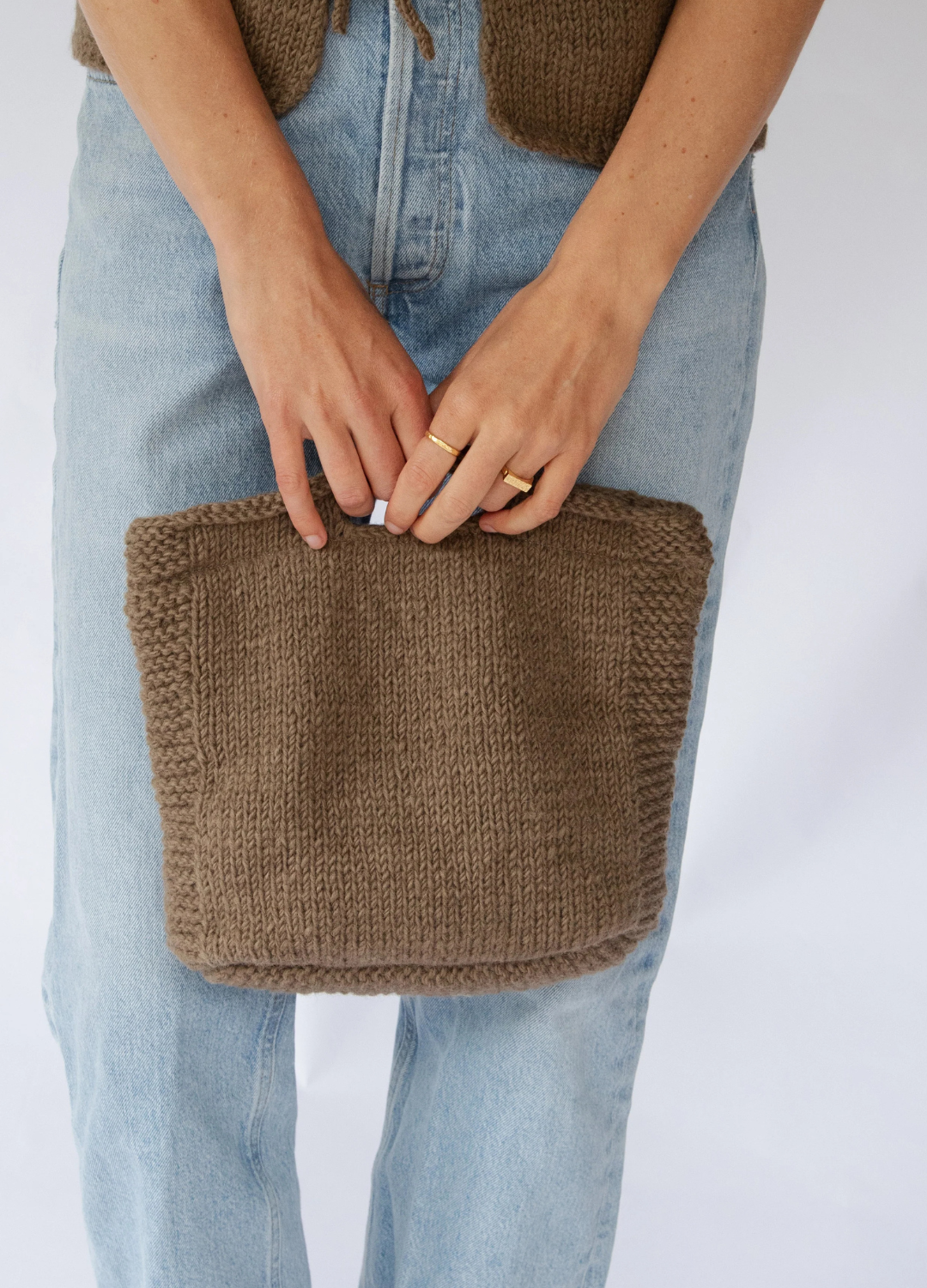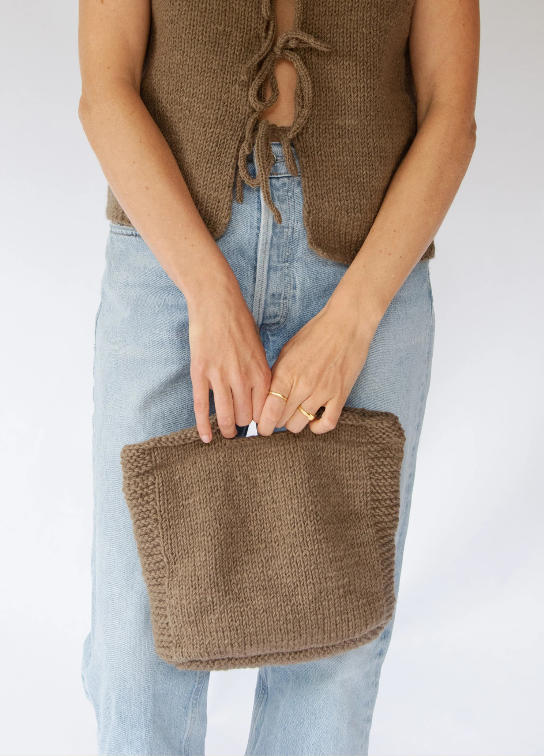 Angie Woven Vegan Leather Handle Bag + Pouch (Caramel)