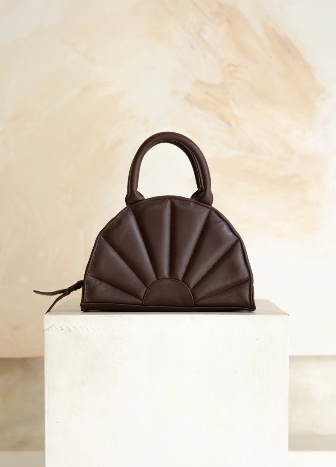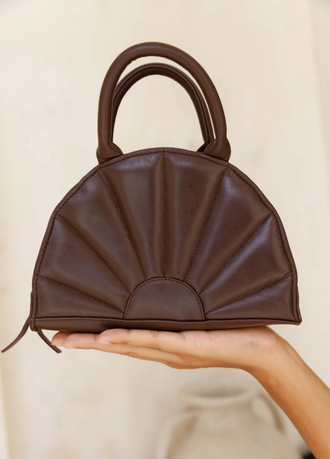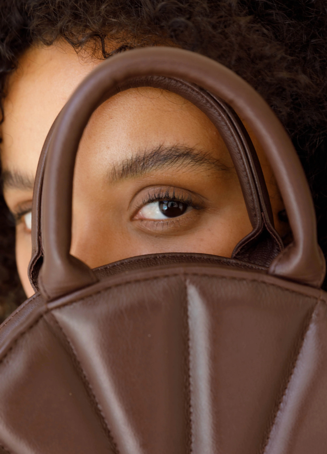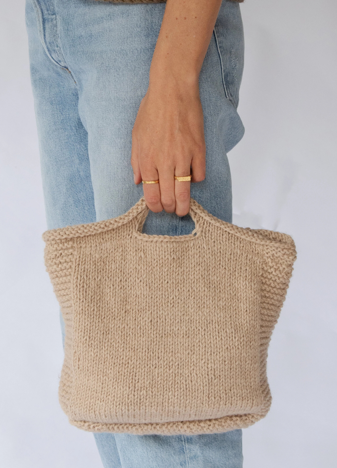 Angie Woven Vegan Leather Handle Bag + Pouch (Caramel)