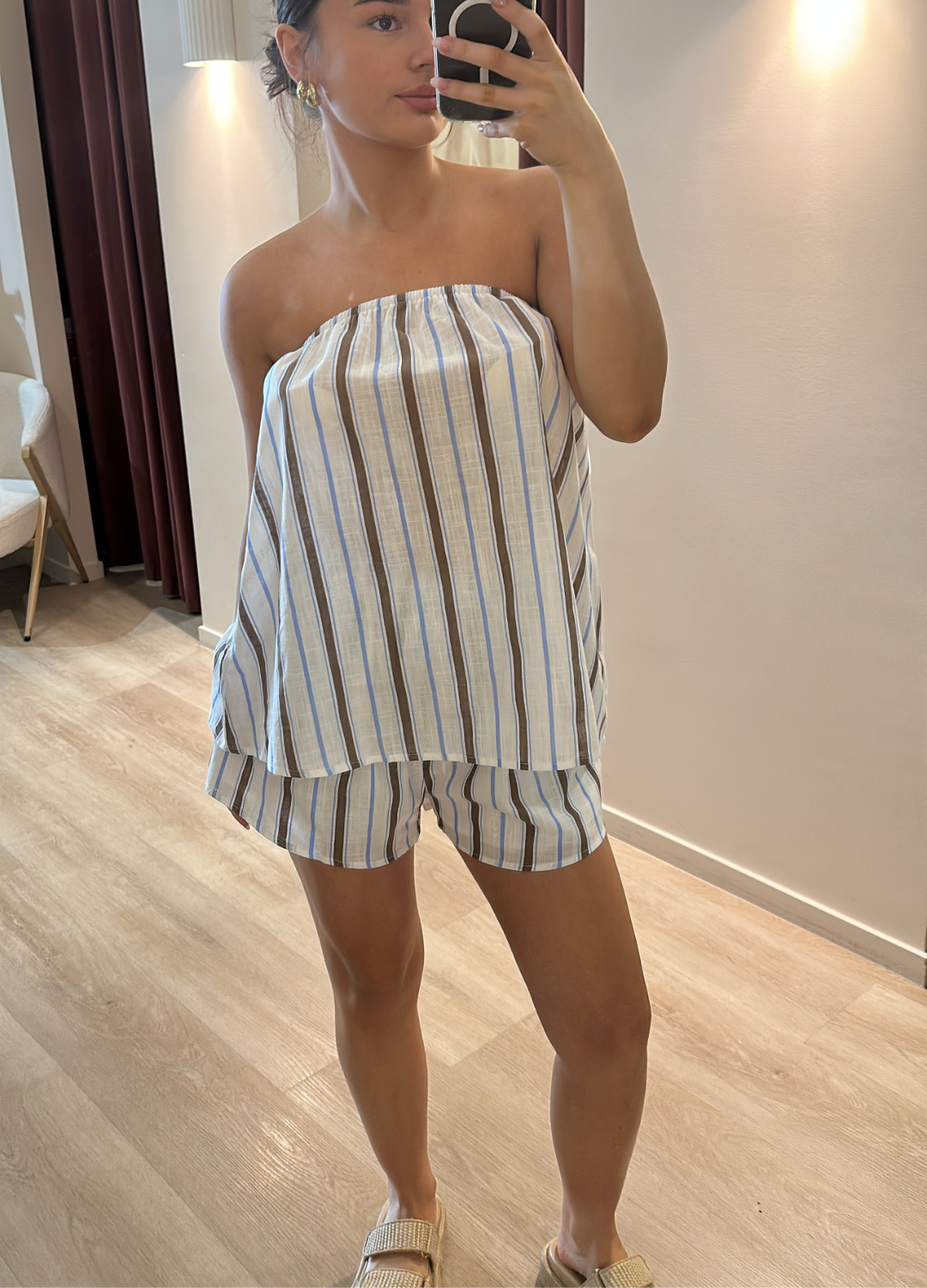 Liora Strapless Set - Choc/Blue Stripe