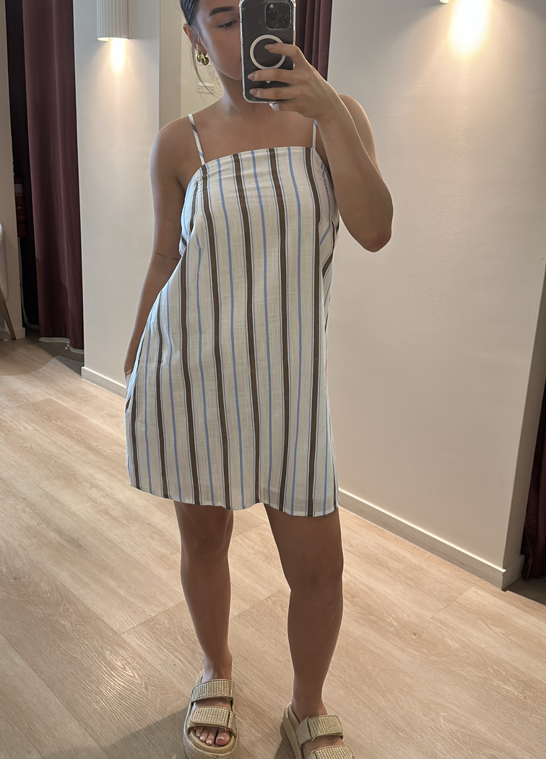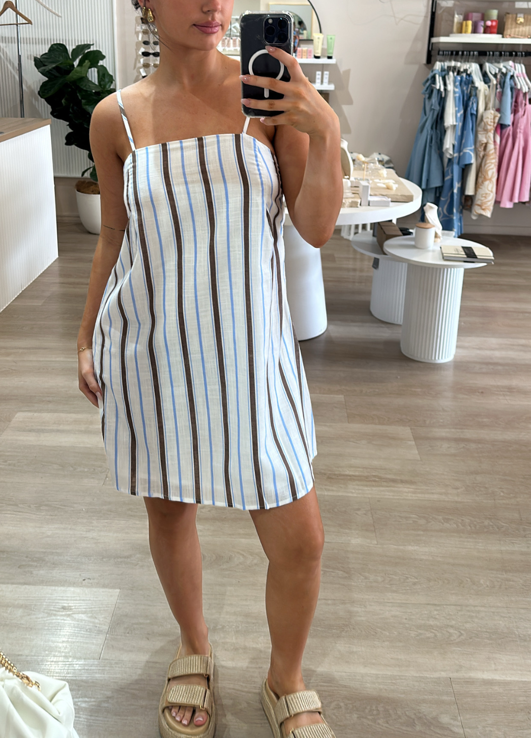 Liora Mini Dress - Choc/Blue Stripe