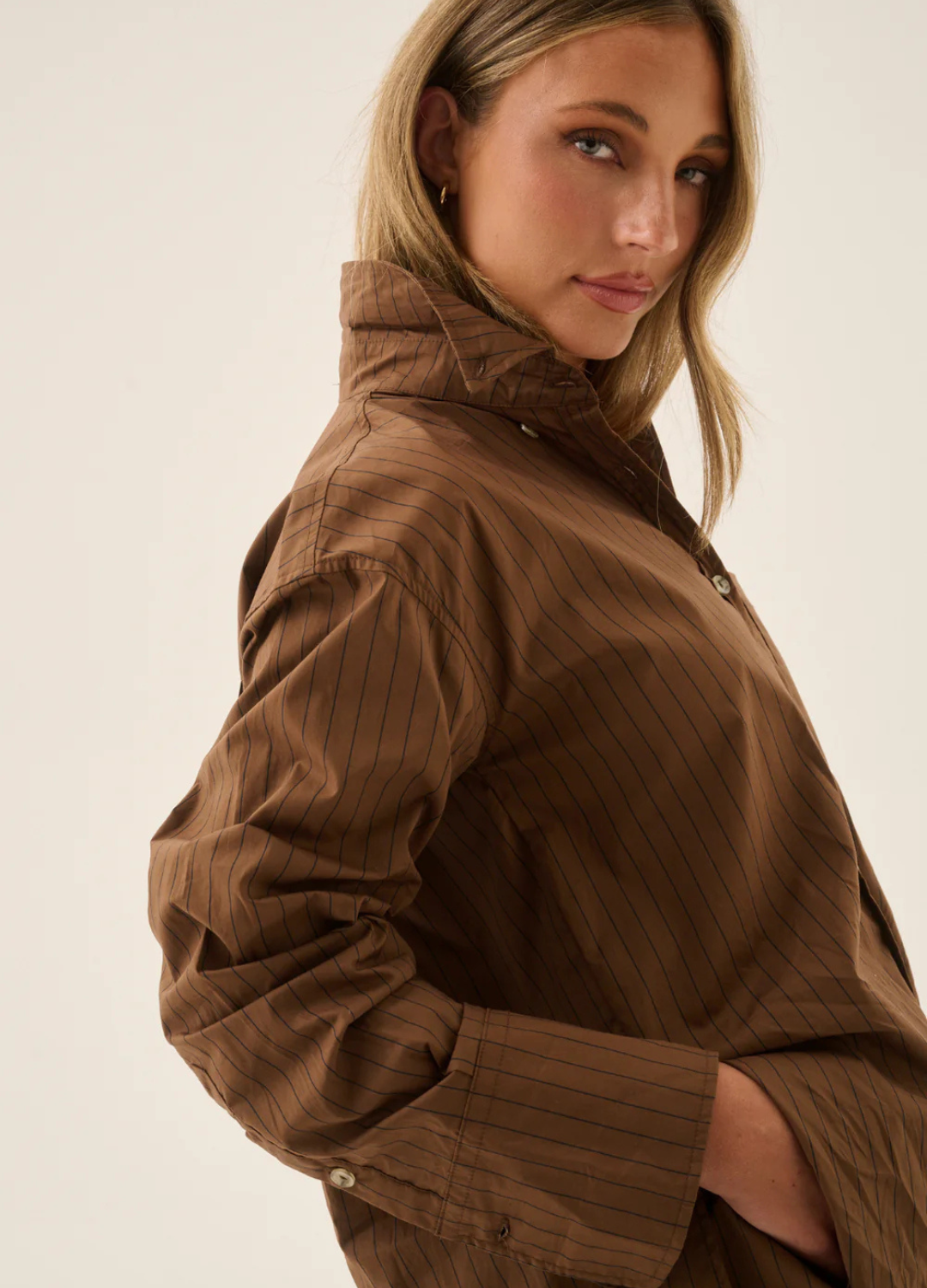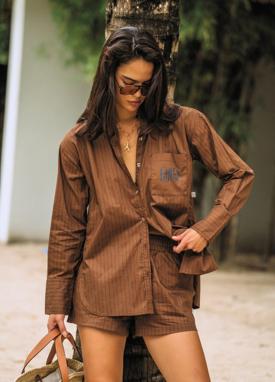 Our best-selling shape in a rich new colour. The AJJA Pocket Shirt in Mocha is made from 100% premium soft cotton, and is an investment-worthy piece for your wardrobe. Featuring a relaxed curved hemline, exaggerated cuffs, buttoned collar and front pocket with AJJA design. Wear with our matching AJJA Stripe Short in Mocha and your fave sneakers for an effortlessly cool everyday look.
