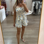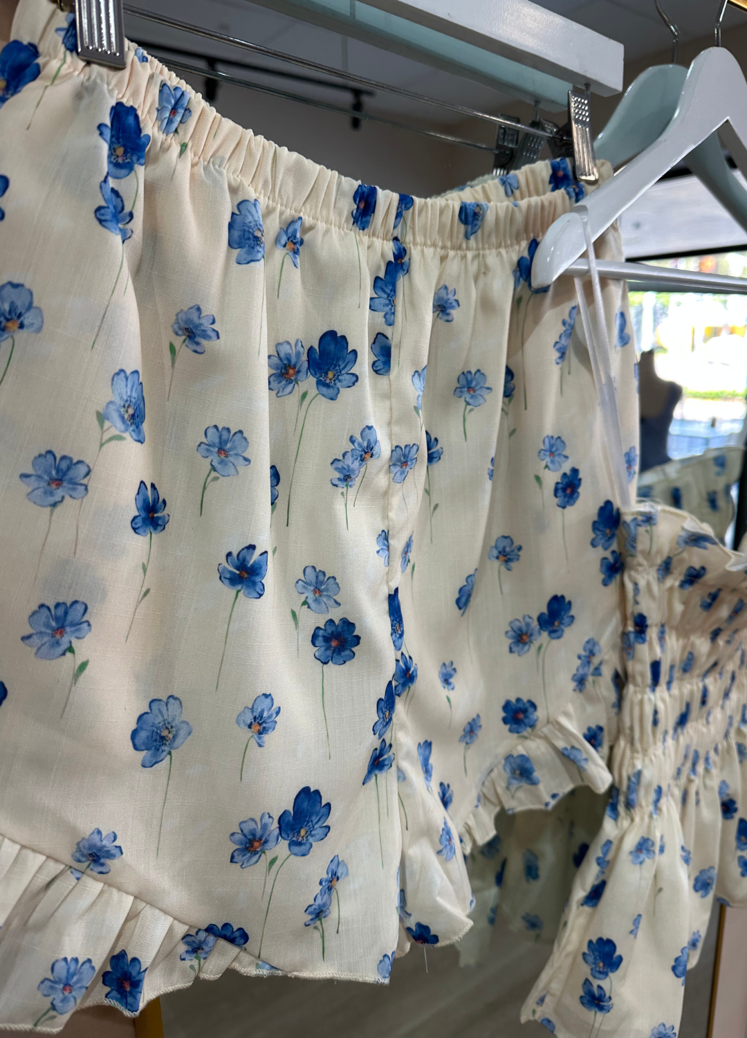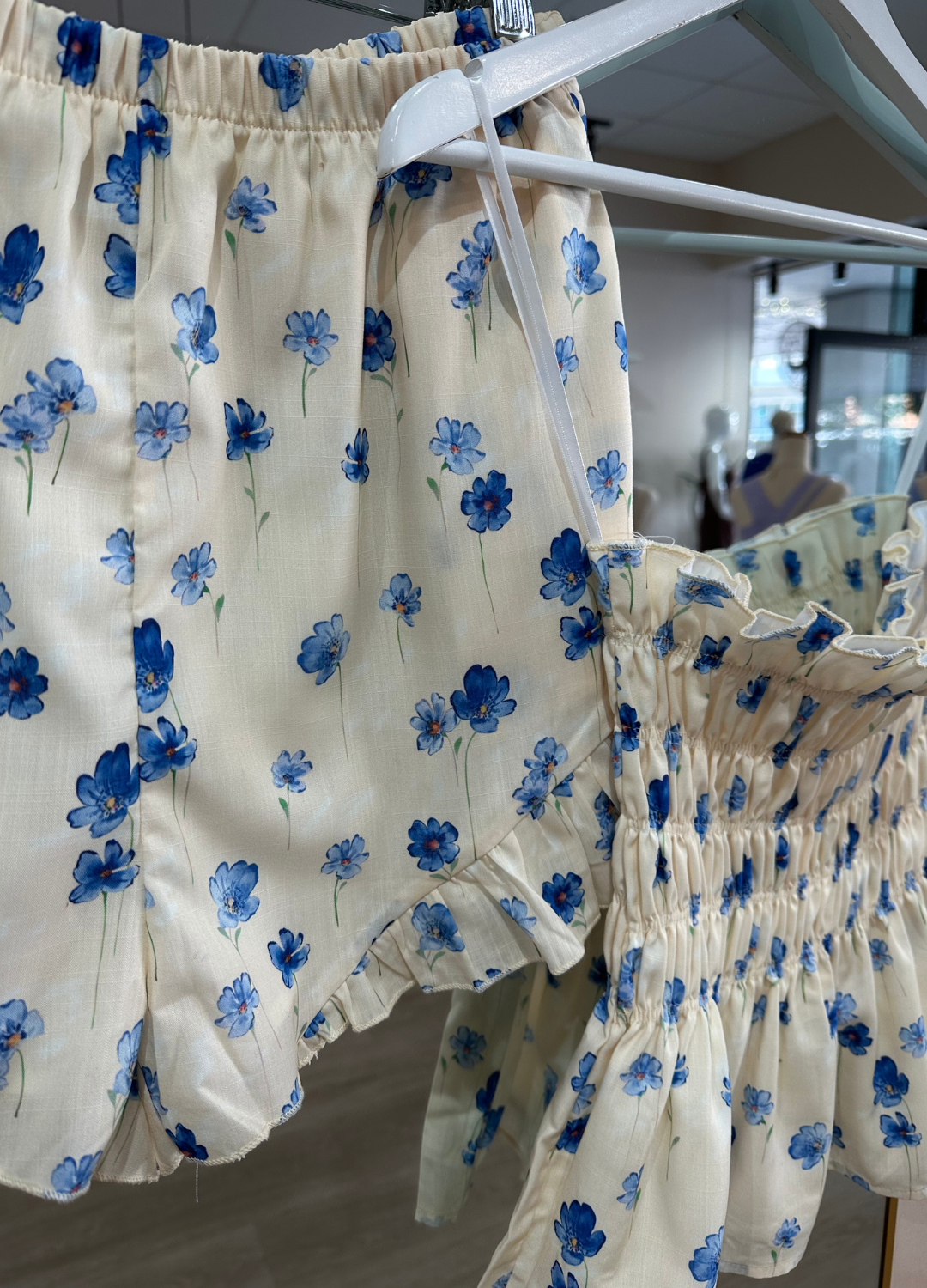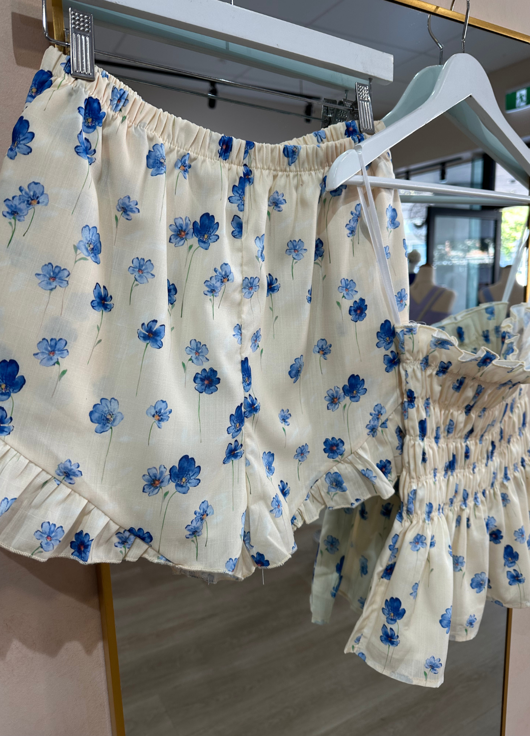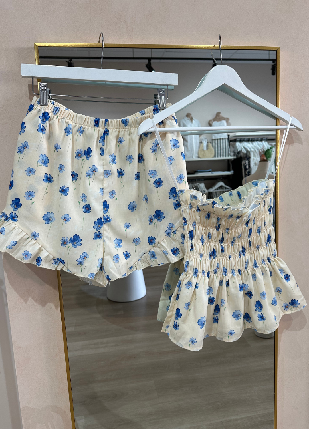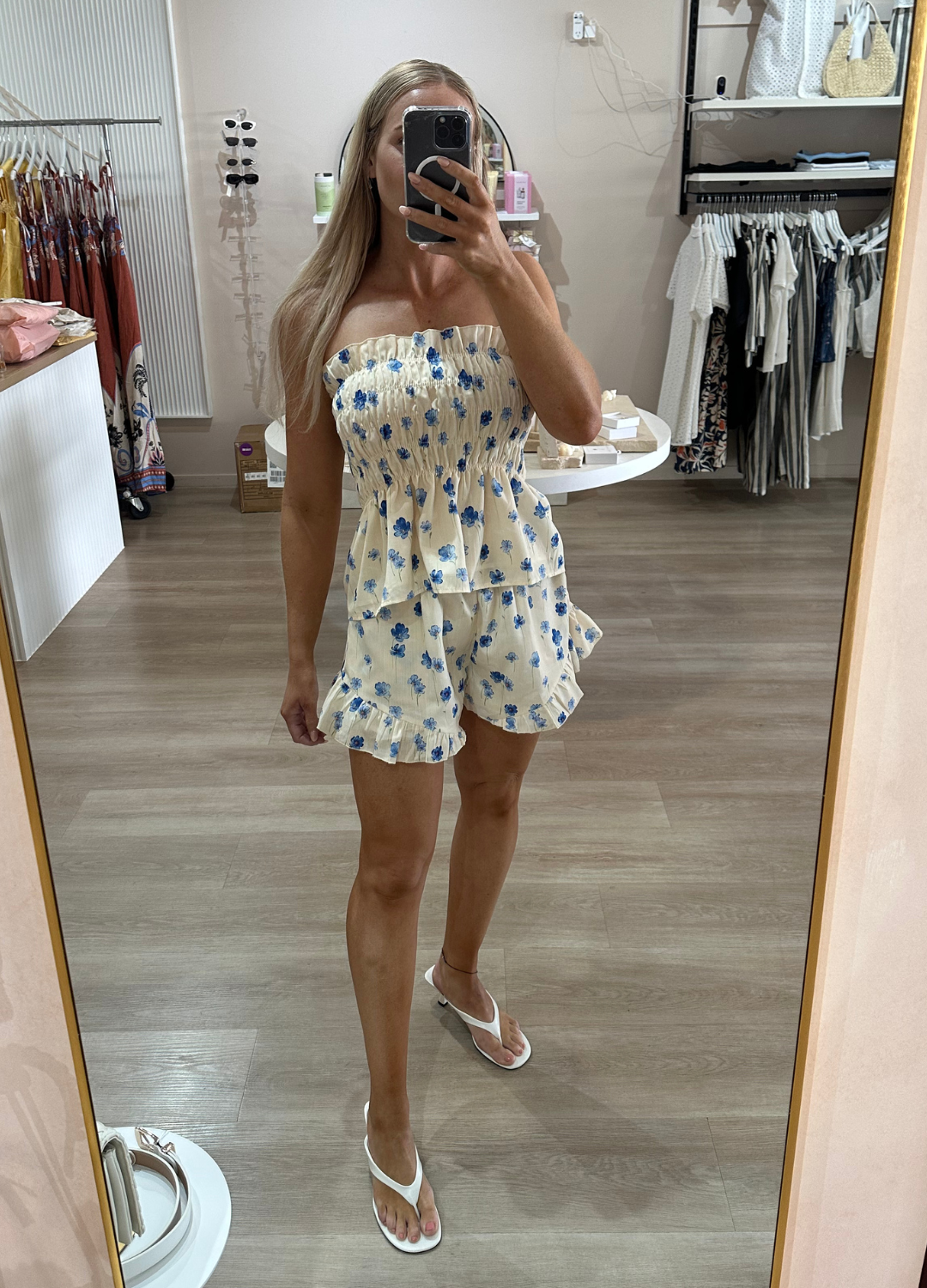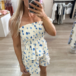 Alina Floral Short Set featuring a strapless top and matching shorts with a fresh, playful design.