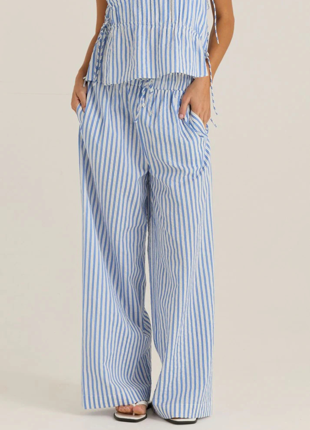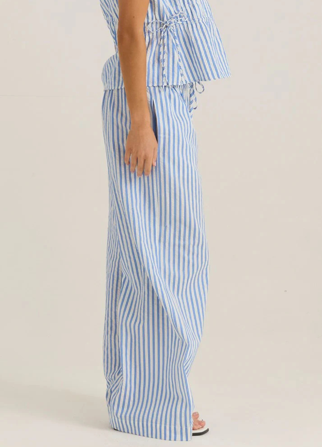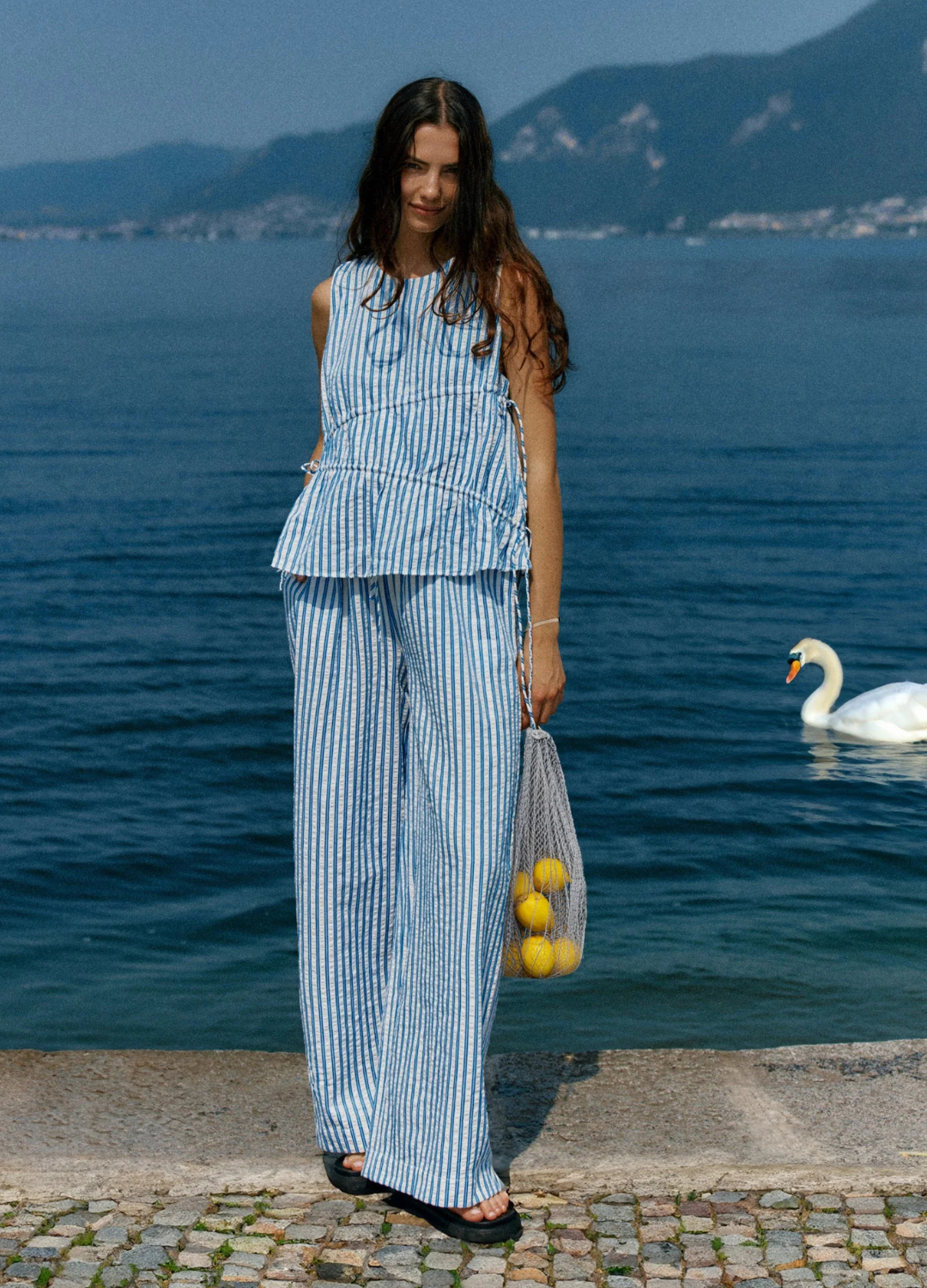 Seersucker texture and a soft, wide-leg silhouette make this pant your new go-to for stylish comfort. The elastic waistband with a self-tie ensures an easy fit that still looks polished. It’s relaxed dressing with a modern edge — effortless and elevated all at once.