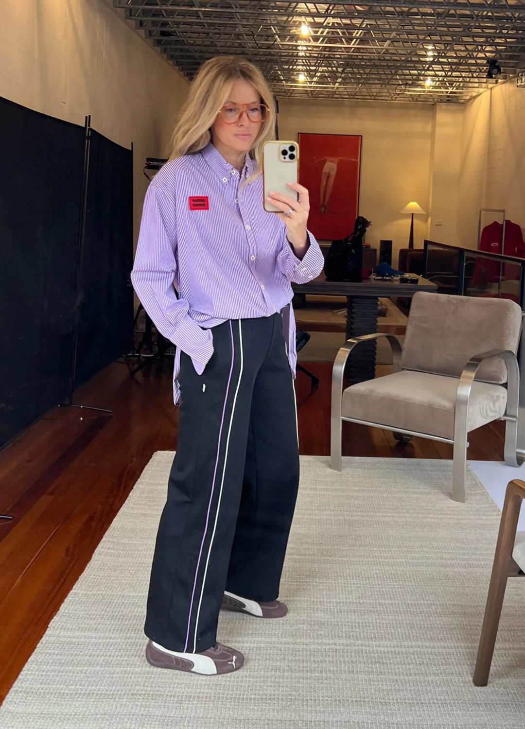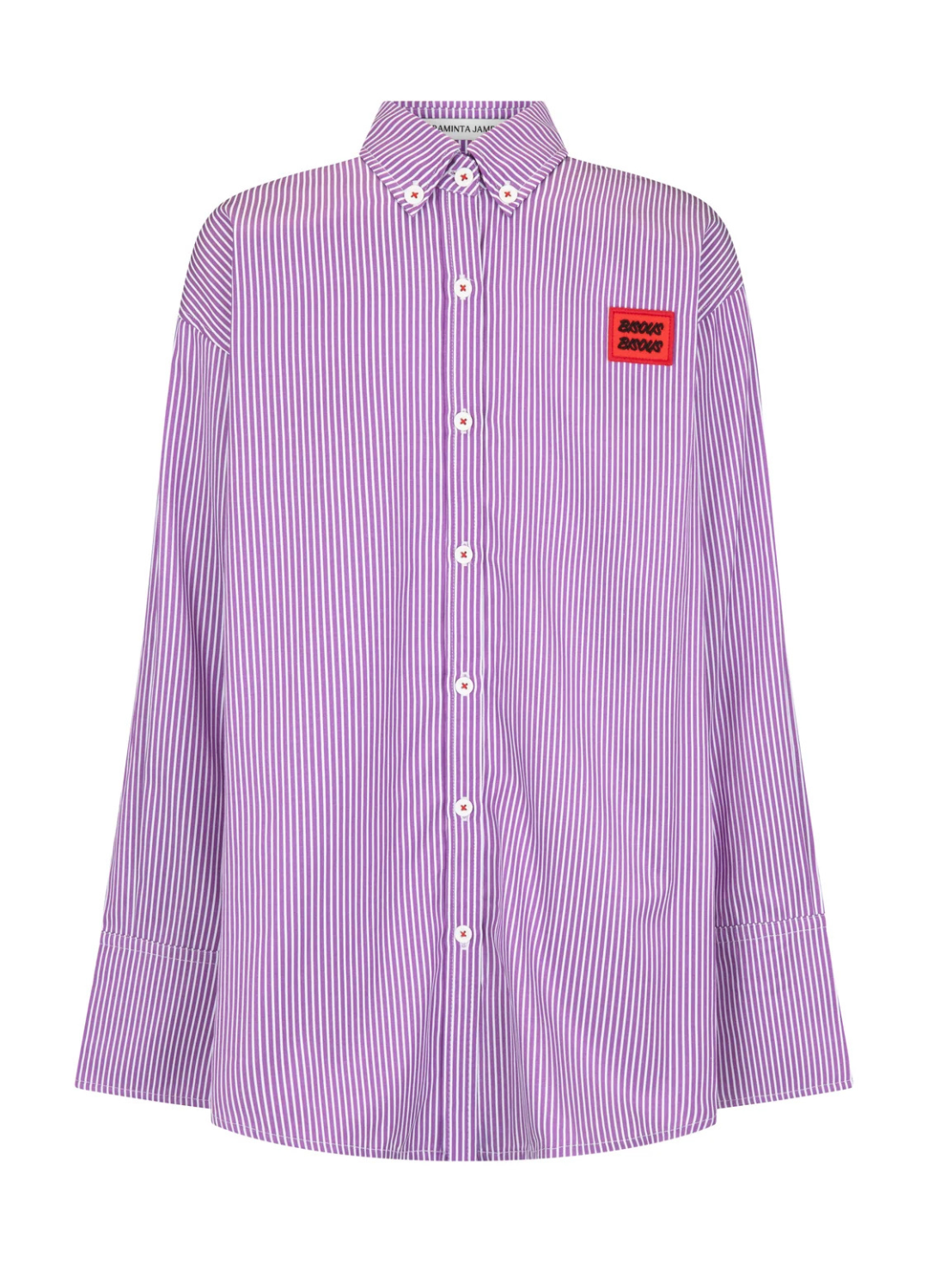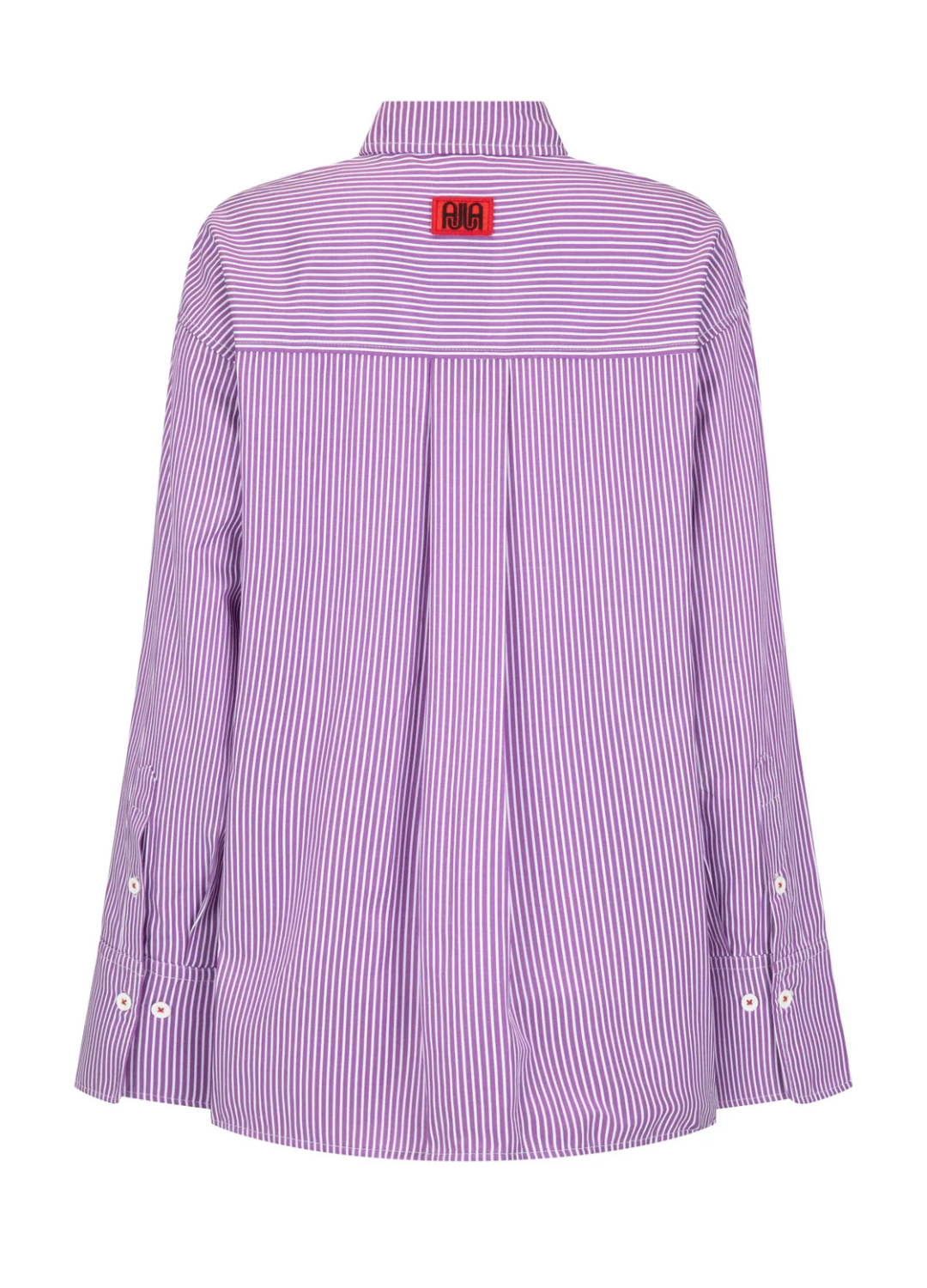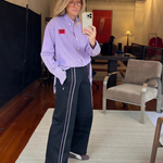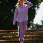 Our Bisous Cotton Stripe Shirt in Violet is endlessly comfortable, and an investment-worthy piece for your wardrobe. Featuring a relaxed curved hemline, exaggerated cuffs, buttoned collar and embroidered patch in contrasting coral on the front. Wear with our Grace Trackpant in Ocean Green and your fave sneakers for an effortlessly cool everyday look.