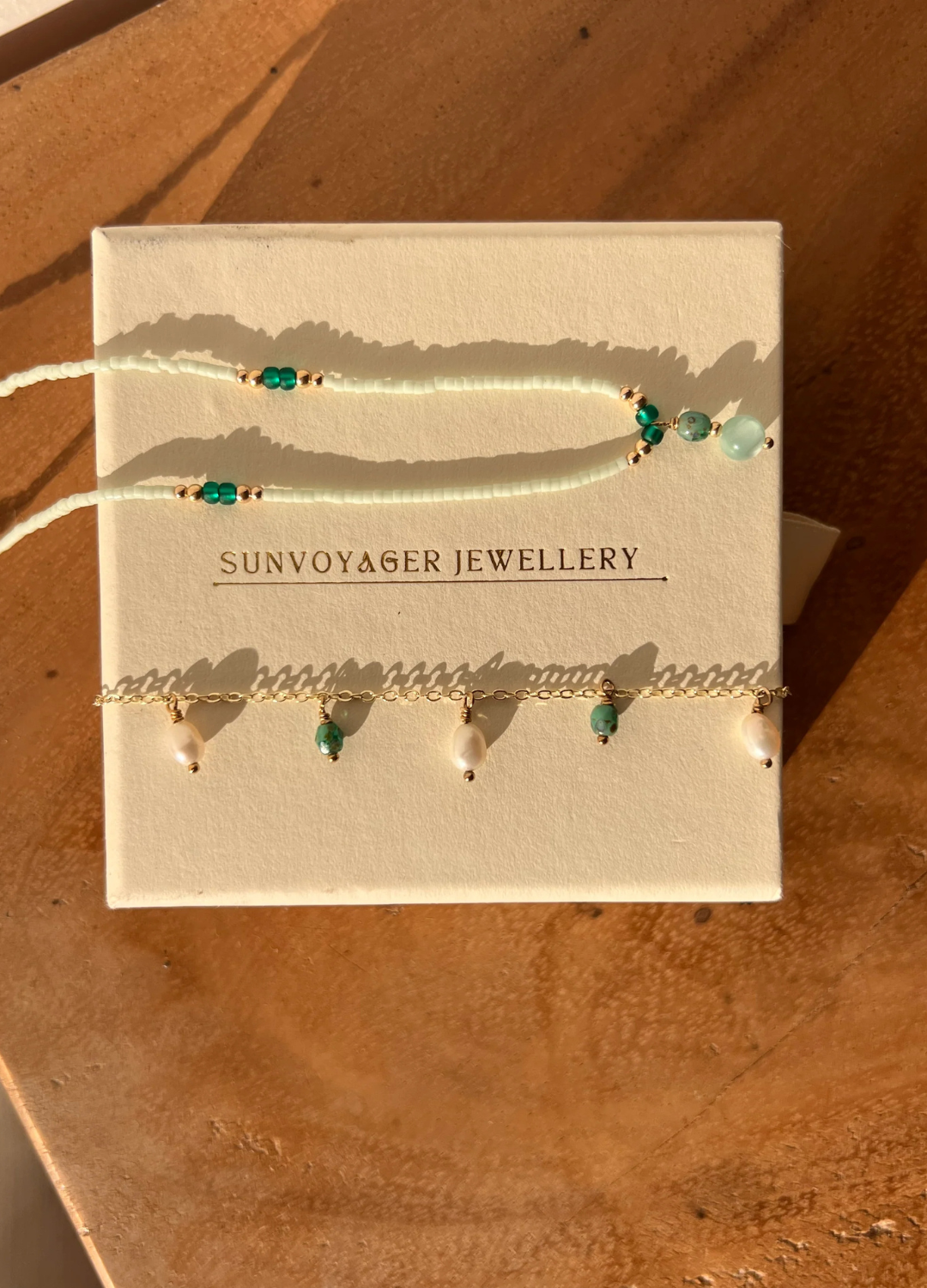 SunVoyager Jewellery is crafted for sun-kissed adventures and seaside escapes. To keep your pieces shining their best, avoid swimming in chlorine and spraying perfume directly onto your jewellery. With a little extra care, your treasures will compliment you for a lifetime.