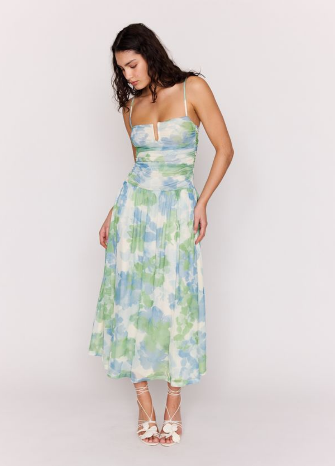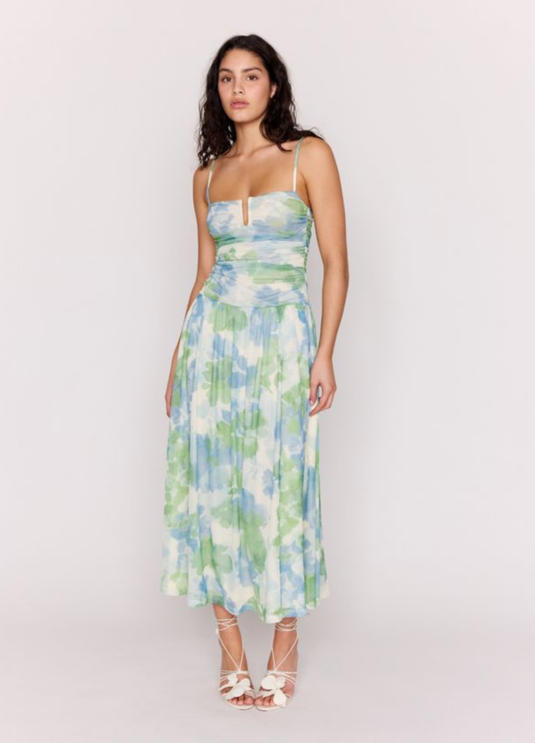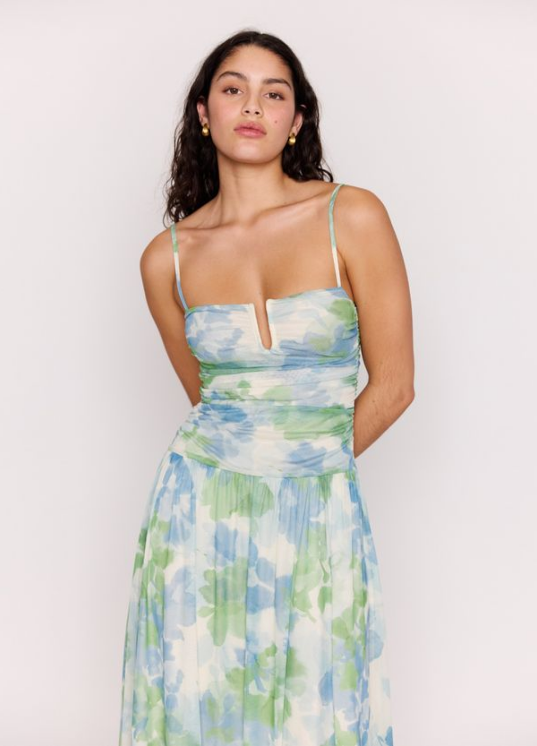 Floaty, feminine and made to flatter. The Carrie Watercolour Mesh Maxi Dress features soft ruching through the bodice, delicate straps and a flowing skirt that moves with you. Finished in a dreamy watercolour print, it’s lightweight, stretchy and perfect for summer events, weddings and long lunches.