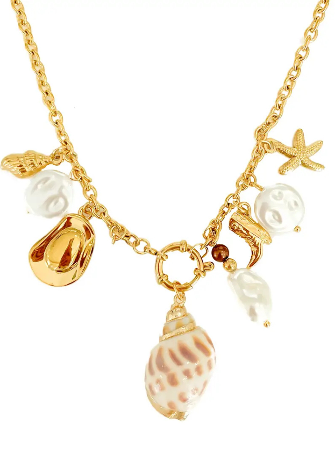 Add a touch of fun to your look with this gold-plated charm necklace. Crafted with a radiant finish, this piece features a collection of delicate charms that capture a playful charm.