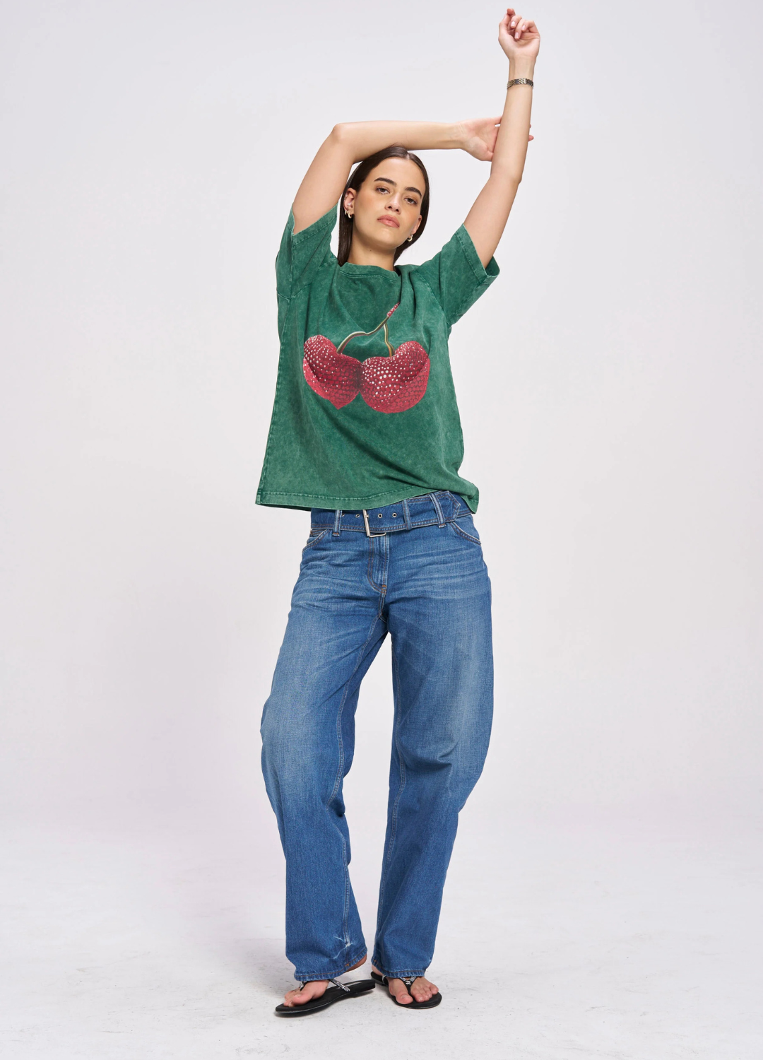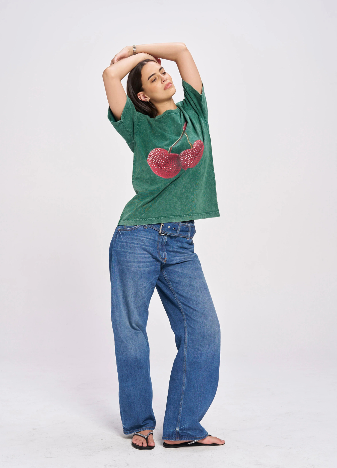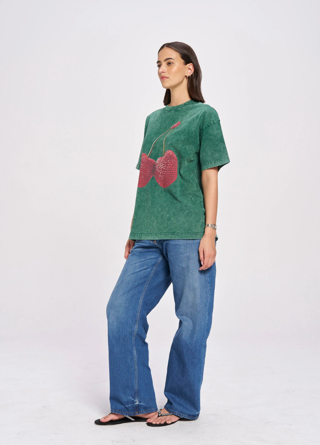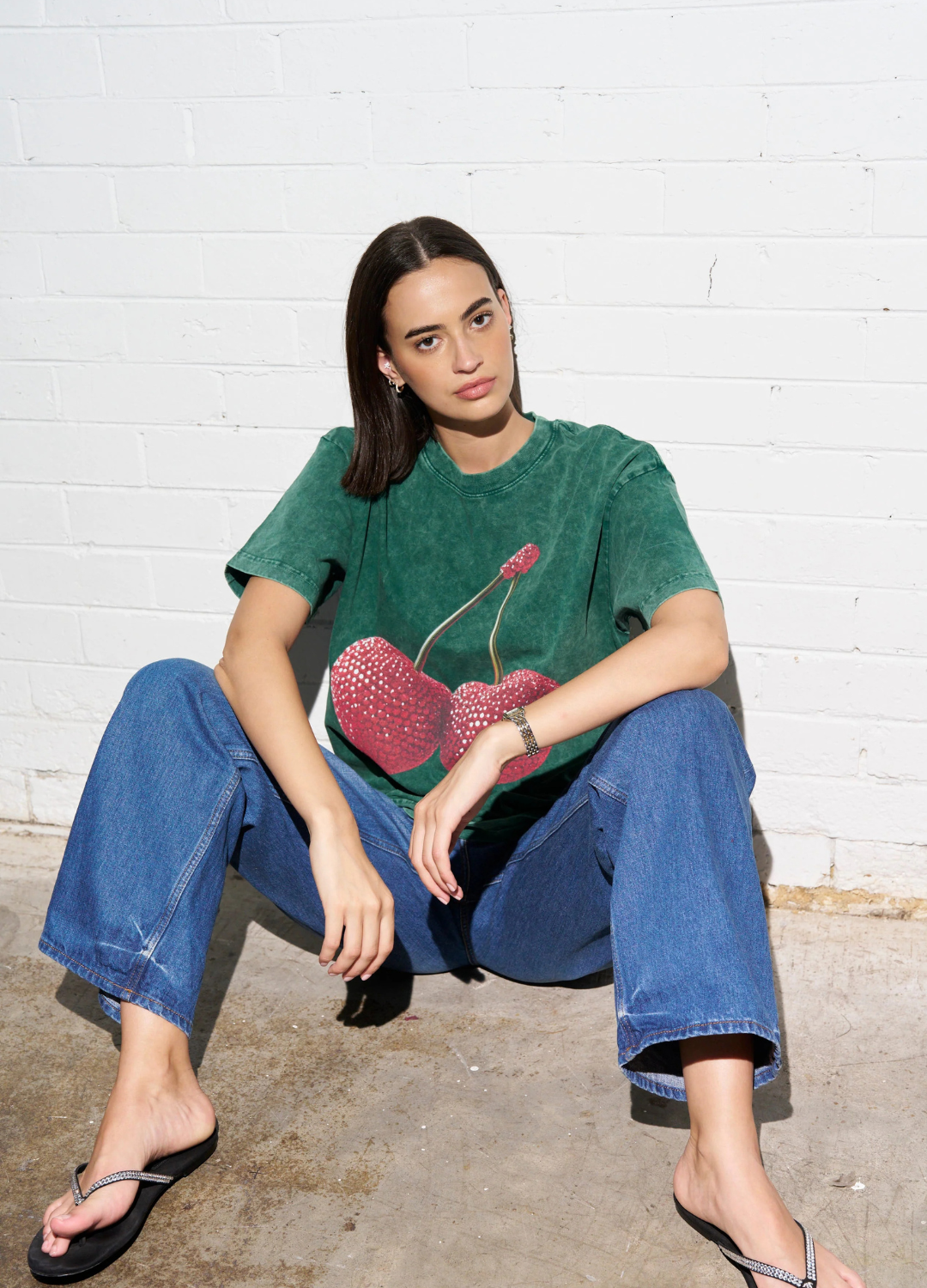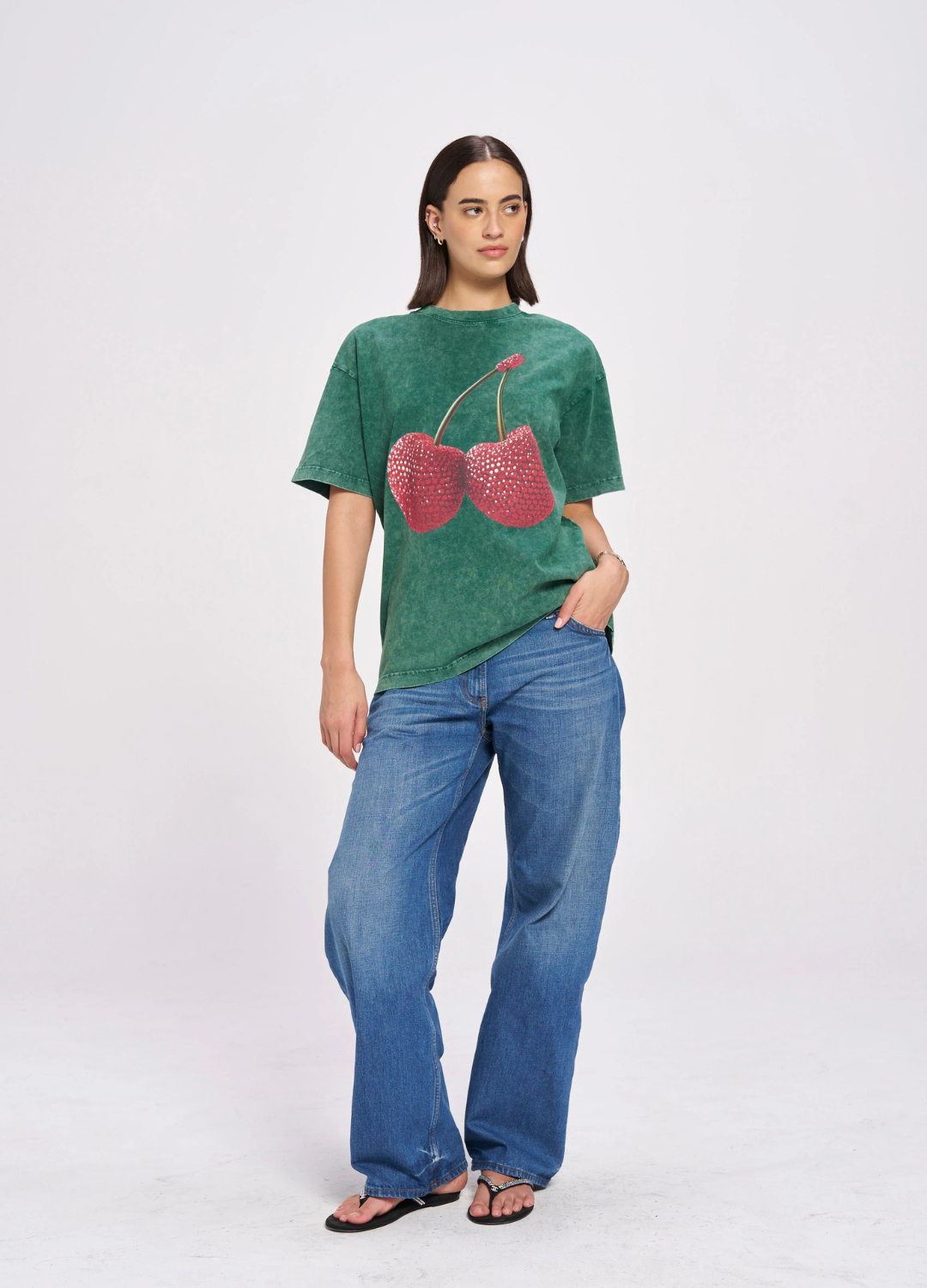 Cherry Baby Acid Wash Tee (Dark Green)