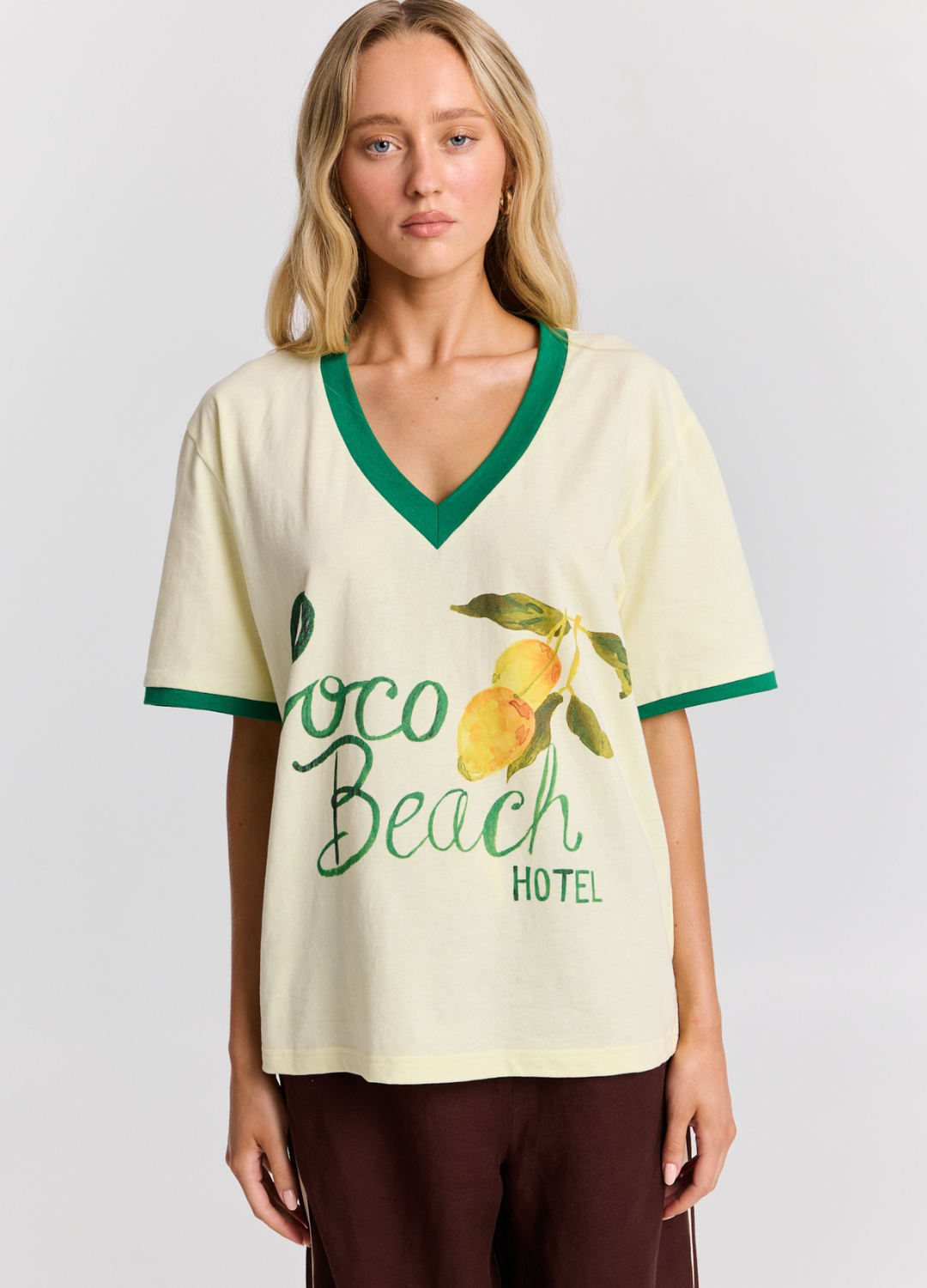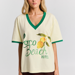 Coco Beach Hotel V-Neck Butter and Green Tee