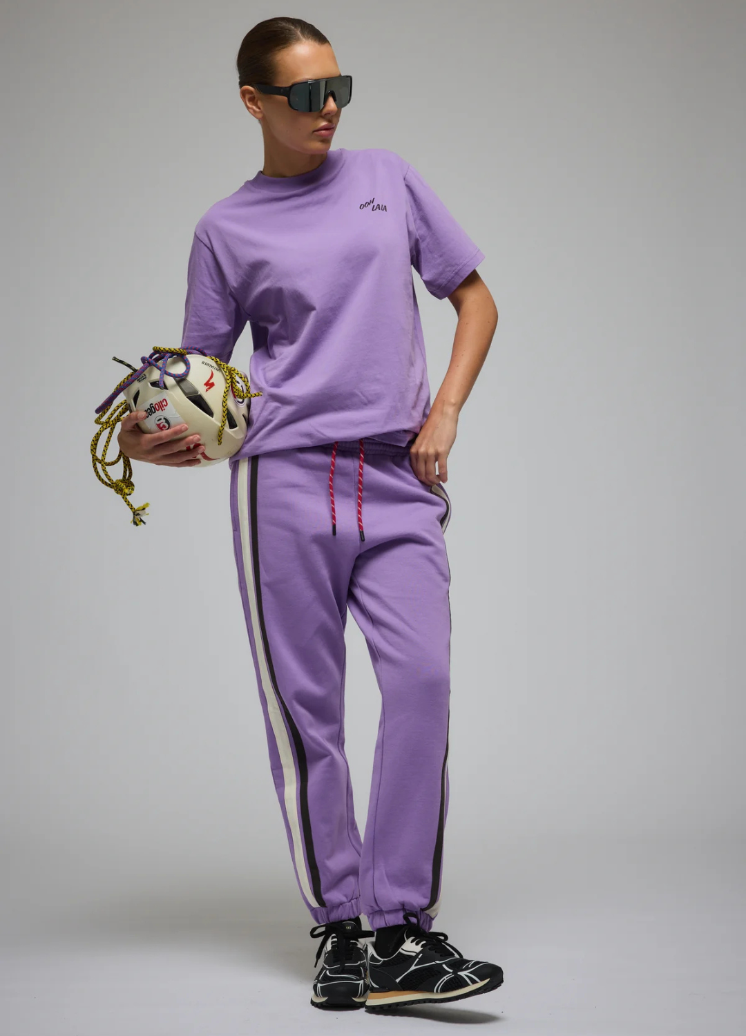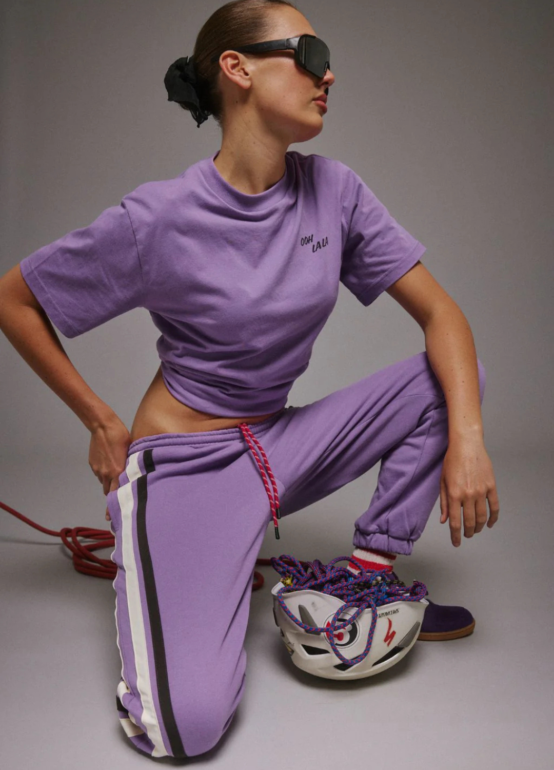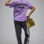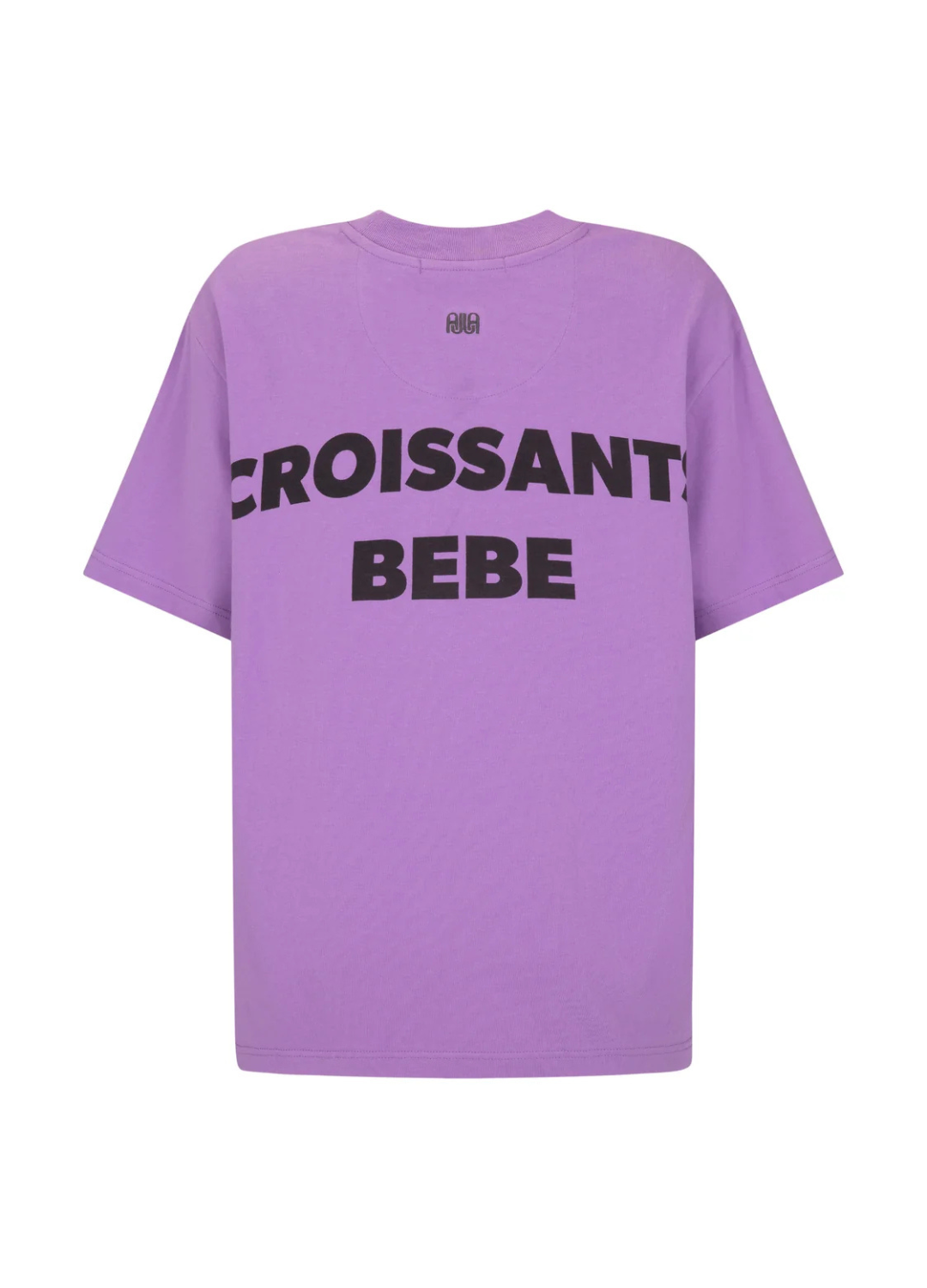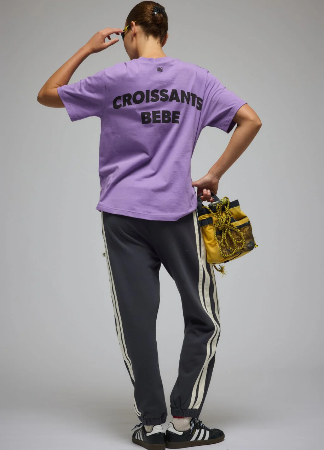 Introducing our Croissants Bebe Tee in Washed Violet. Made from luxurious soft cotton, this style features a round neckline and exclusively designed graphic at the front and back. Designed in our classic shape, this tee is perfect for a relaxed yet chic look. Pair back effortlessly with our Bisous Trackpant in Violet or Grace Trackpant in Noir.