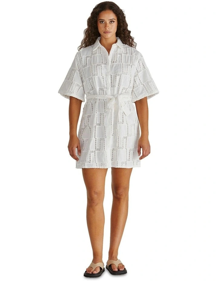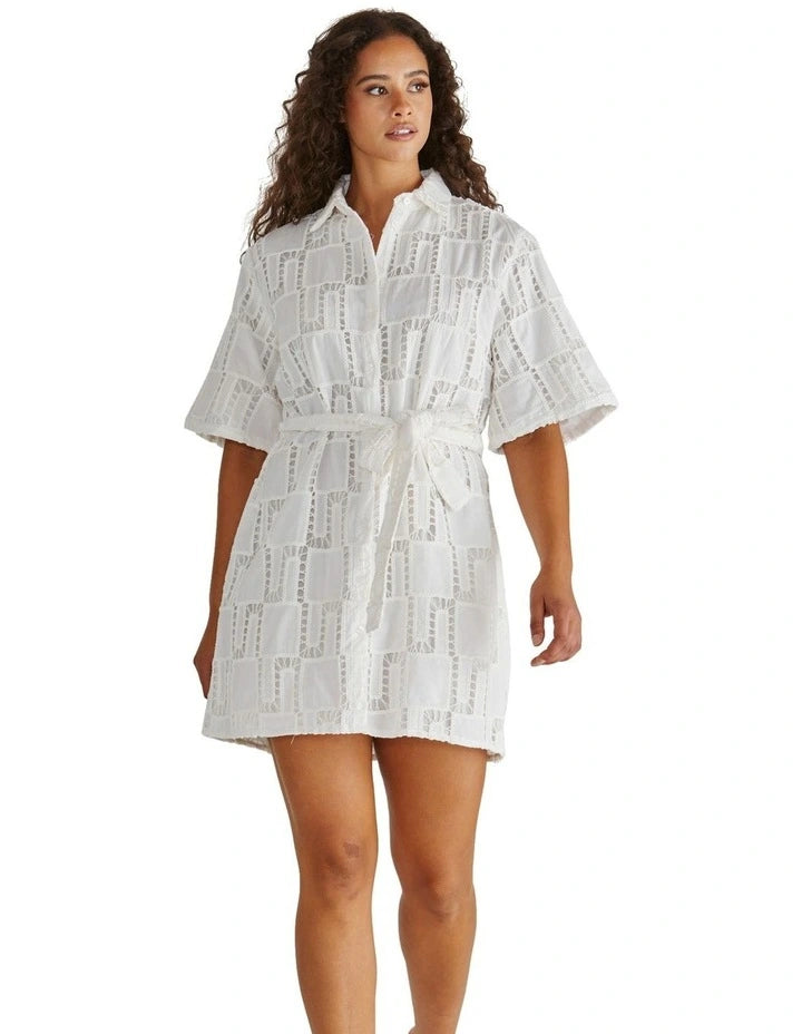 The Dillon Shirt Dress blends polish with play. Crafted in a textured lace with a self-tie belt and concealed placket, its equal parts feminine and effortless. Lined for comfort, its a fresh take on a classic silhouette. Perfect for day-to-night dressing.