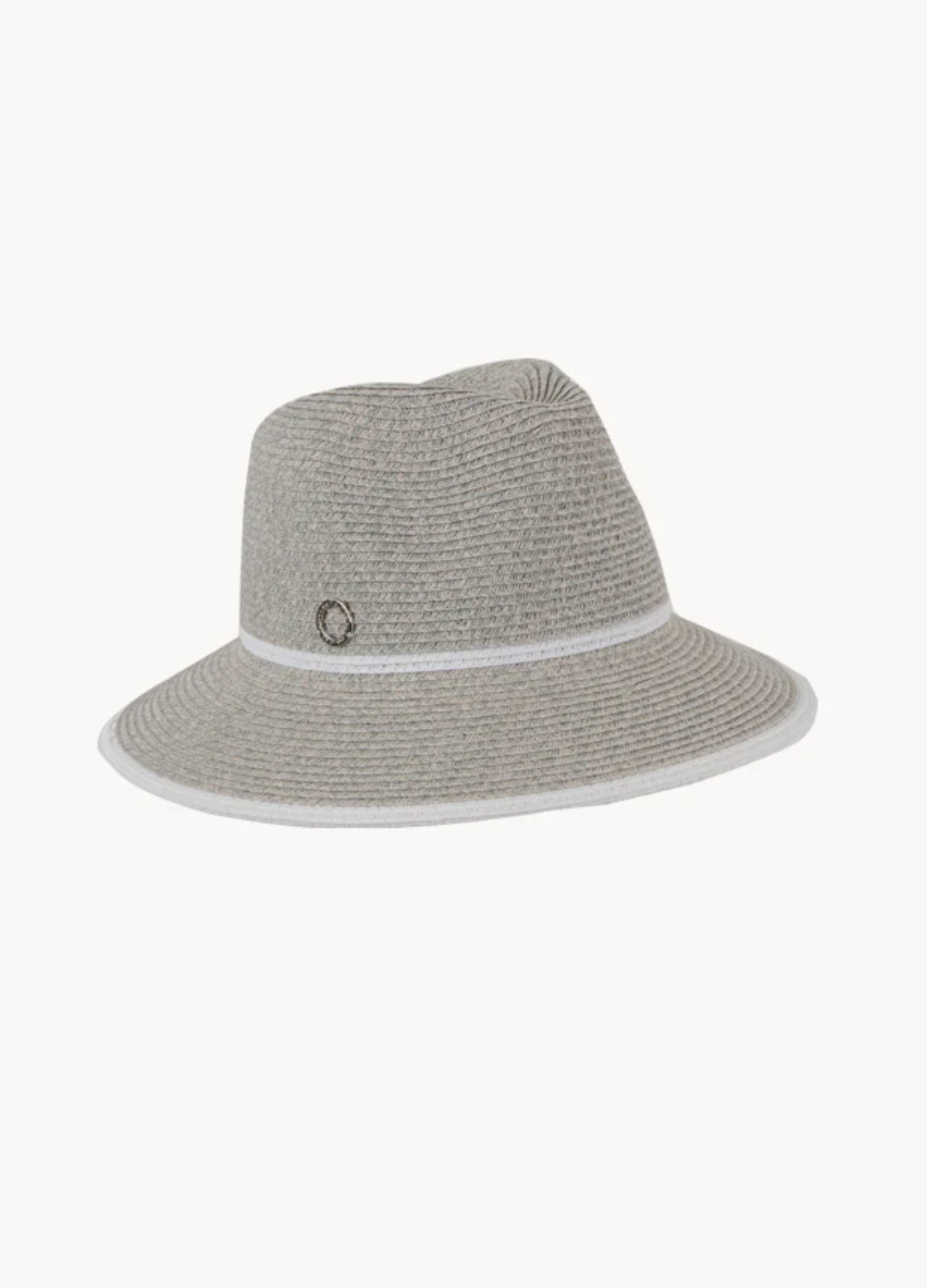 The Edna Down Brim hat offers a stylish blend of modern sophistication and casual charm. Crafted in a soft, woven grey material with a contrasting white trim around the brim and crown, this hat provides both comfort and sun protection. Its classic fedora inspired shape and downturned brim make it a versatile accessory, suitable for both sunny outings and relaxed indoor settings.