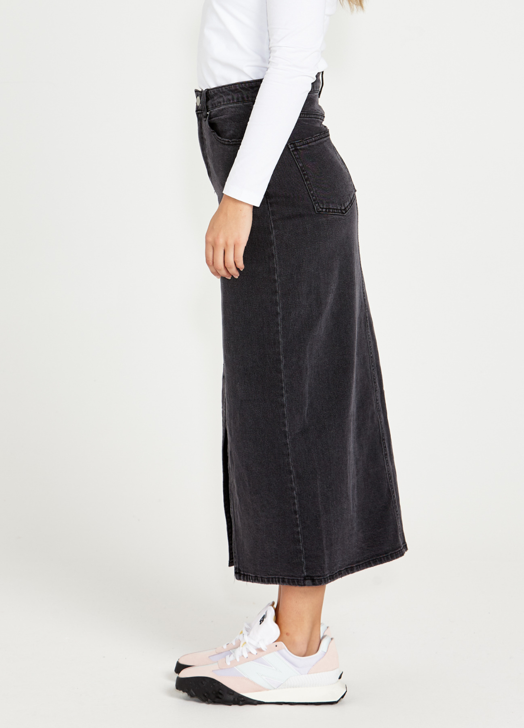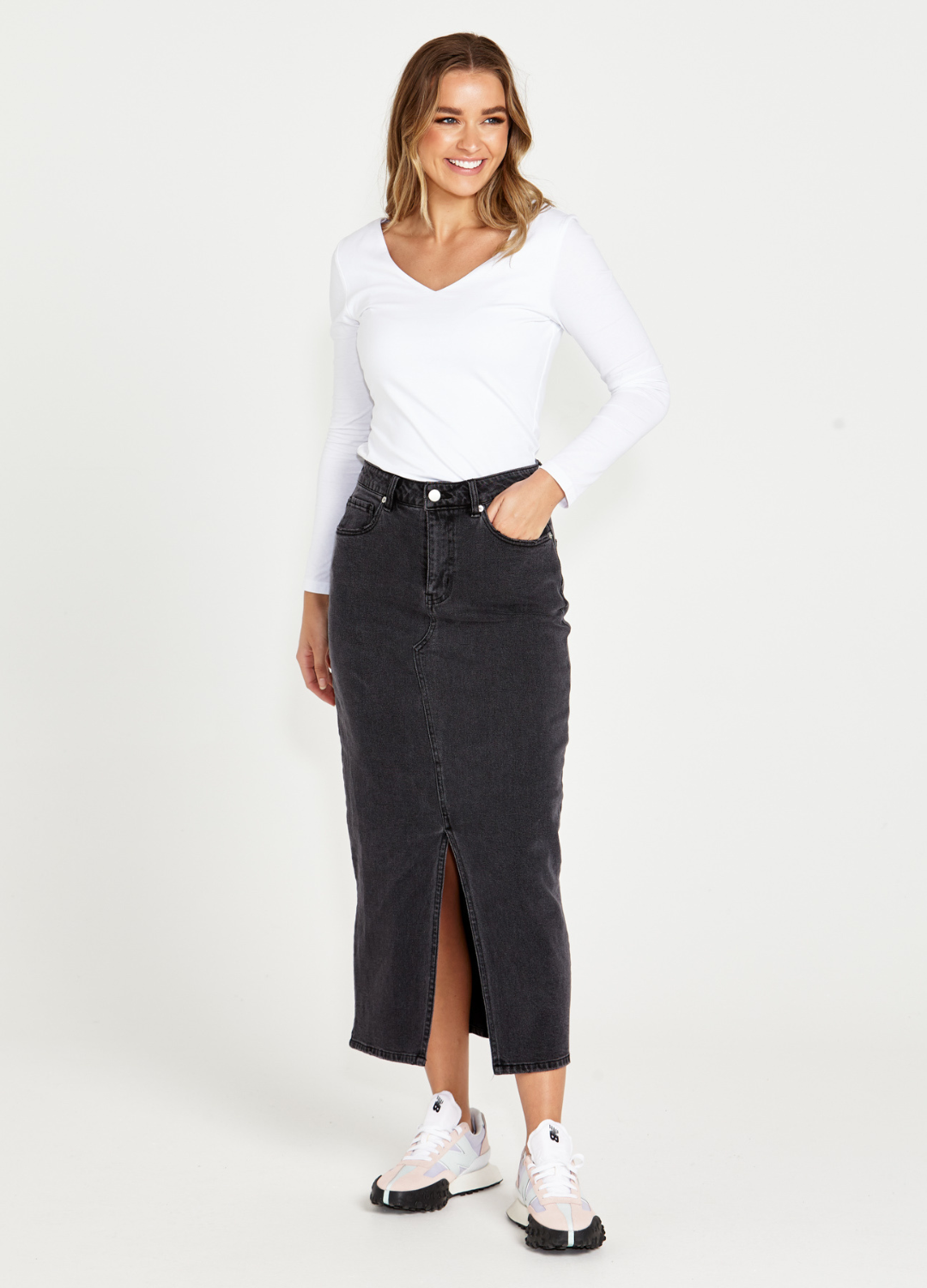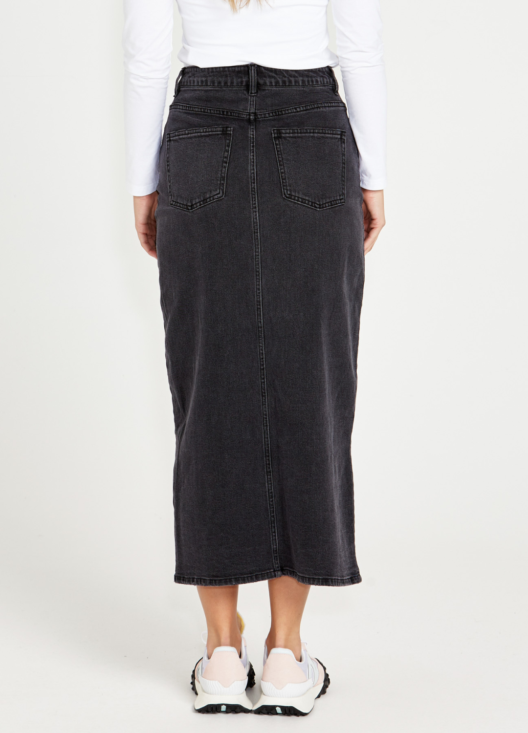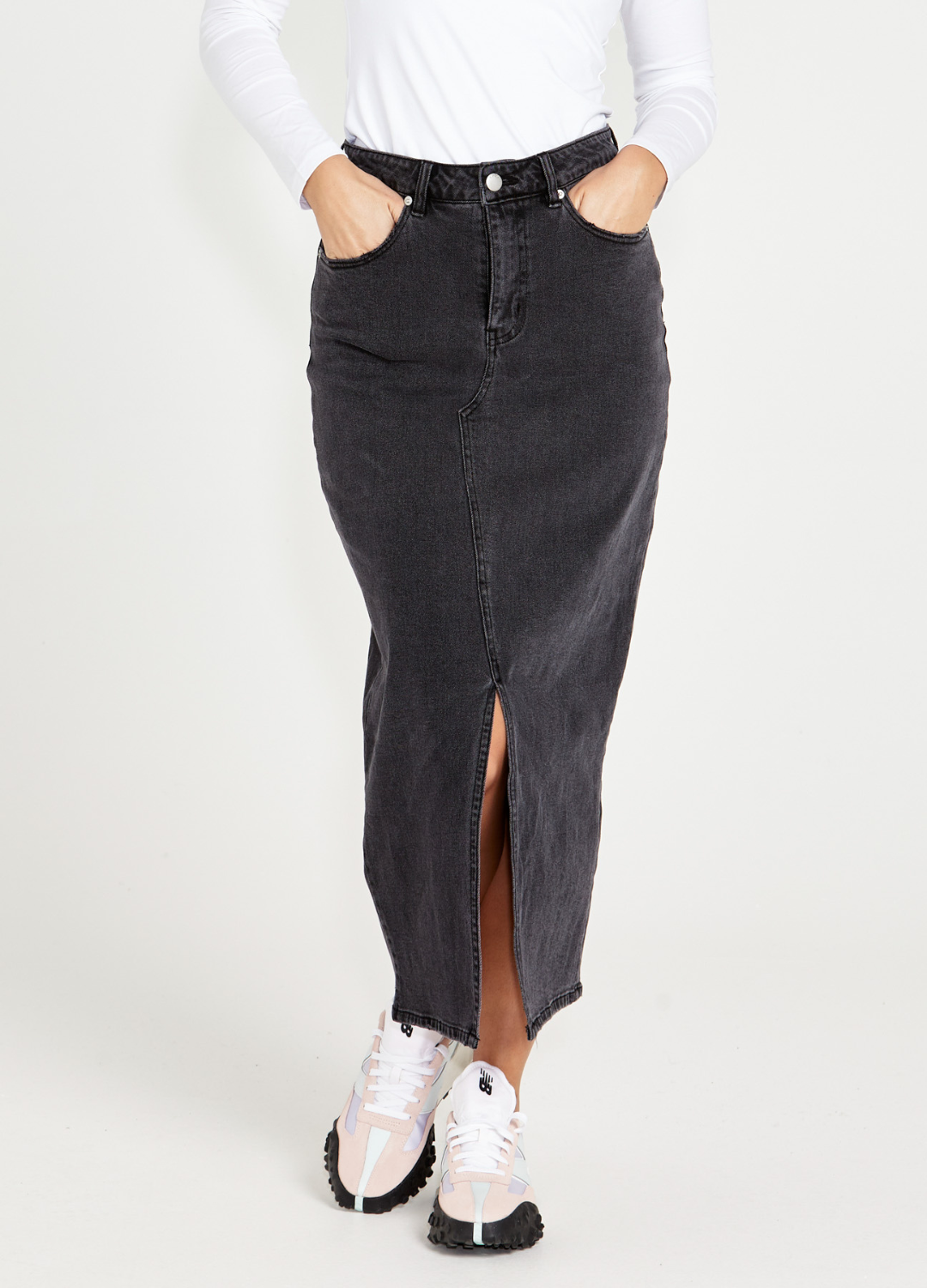Elevate your wardrobe effortlessly with this essential piece. With its straight design, long length, and five-pocket detail, this skirt is a versatile must-have for all season round.