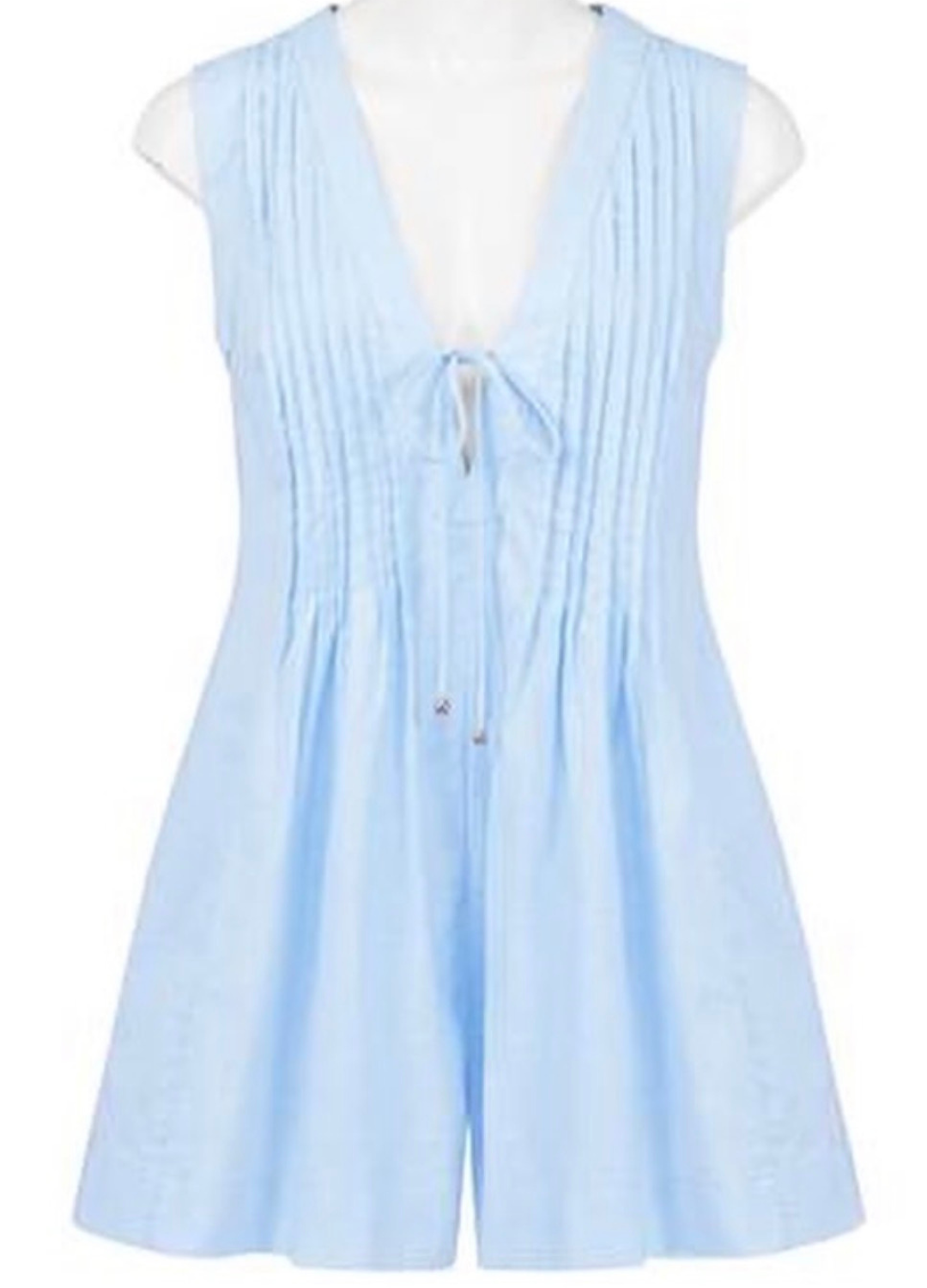 Step into effortless elegance with this powder blue short playsuit, designed for both comfort and style. Featuring a front and back pleat detail that adds a touch of tailored sophistication, this playsuit flatters the silhouette while maintaining a relaxed, feminine look.