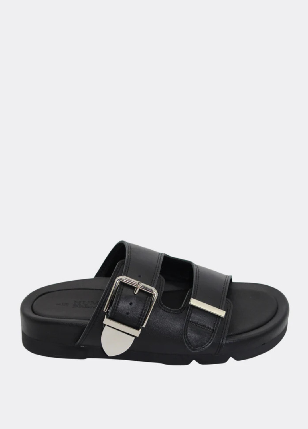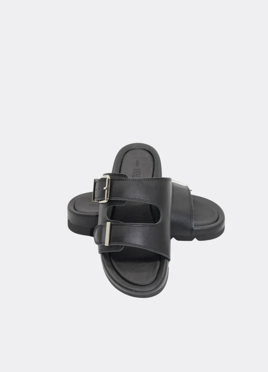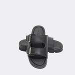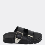 Slide into comfort and style with soft padded footbed. Double strap upper with statement making buckle feature Adjustable top buckle Non leather upper and lining 2.8cm padded footbed & sole.