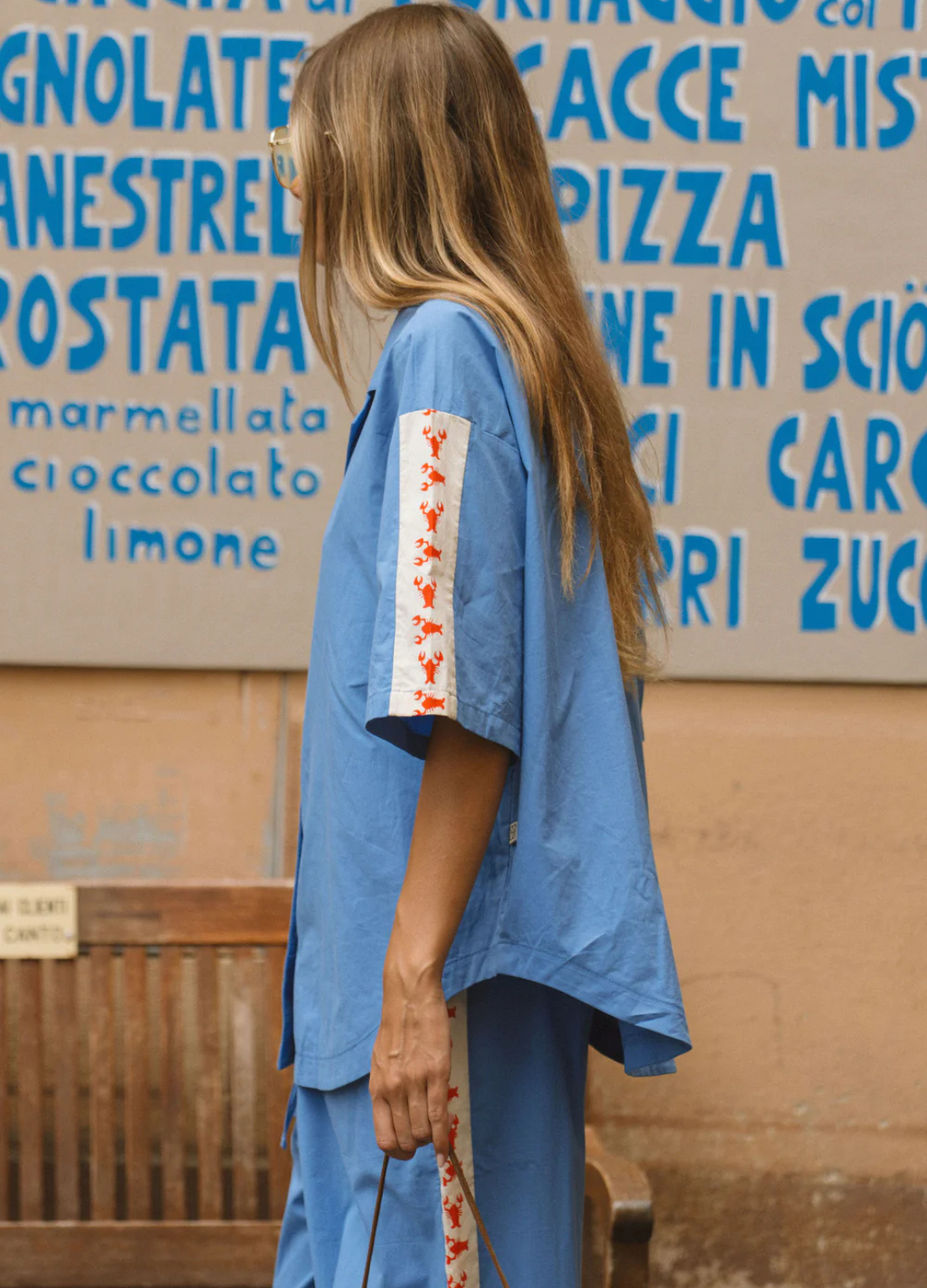 The Lobster Shirt in French Blue is a timeless piece, designed for ultimate comfort and laid-back luxury - perfect for sun-soaked days on the water and sunset evenings in coastal towns. Crafted from breathable 100% cotton poplin with tonal lobster trims at the sides. Complimented by tortoiseshell style buttons, and designed to pair perfectly with our matching Lobster Shirt in French Blue for head to toe coastal charm.