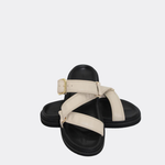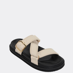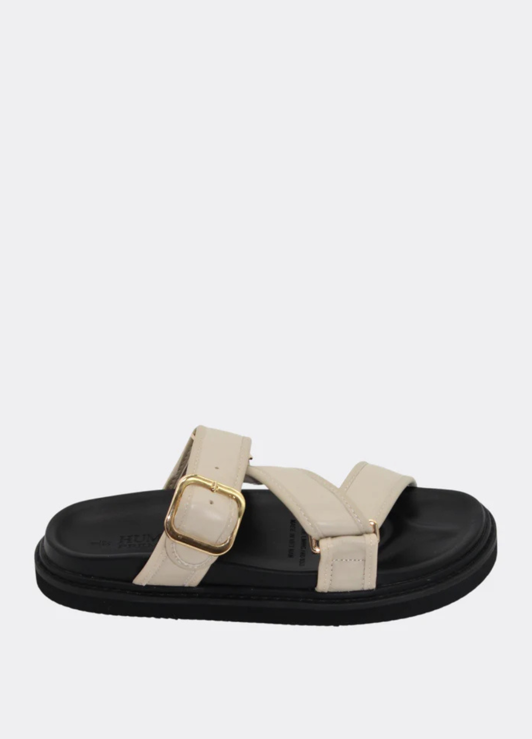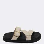 Slide into comfort and style with soft padded footbed. Soft leather upper and lining Adjustable gold buckle 2.8cm padded footbed & sole.