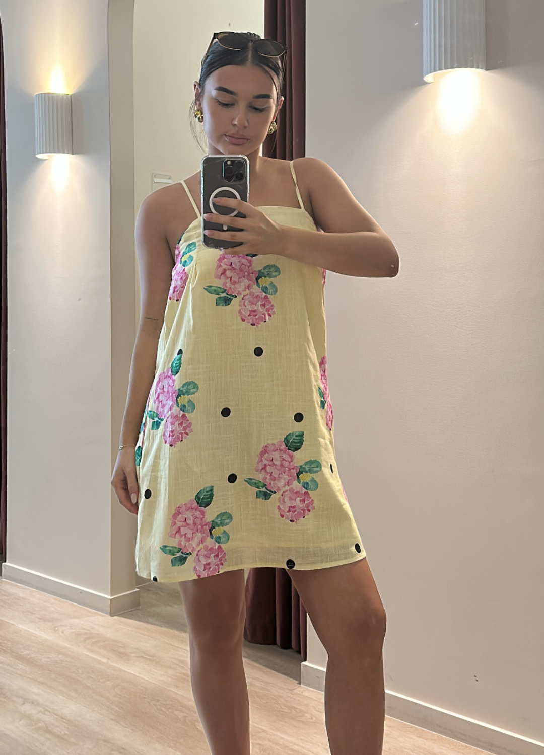 The Maribel Polka Dot Mini Dress captures easy elegance with a light, feminine silhouette. Featuring a classic square neckline and delicate adjustable straps, this style is designed for both comfort and shape. An elasticated back ensures a flexible fit, while the discreet side zipper and full lining create a smooth, refined finish. Made from breathable 100% cotton, it’s an ideal choice for sunny days, casual weekends, and effortless everyday wear.