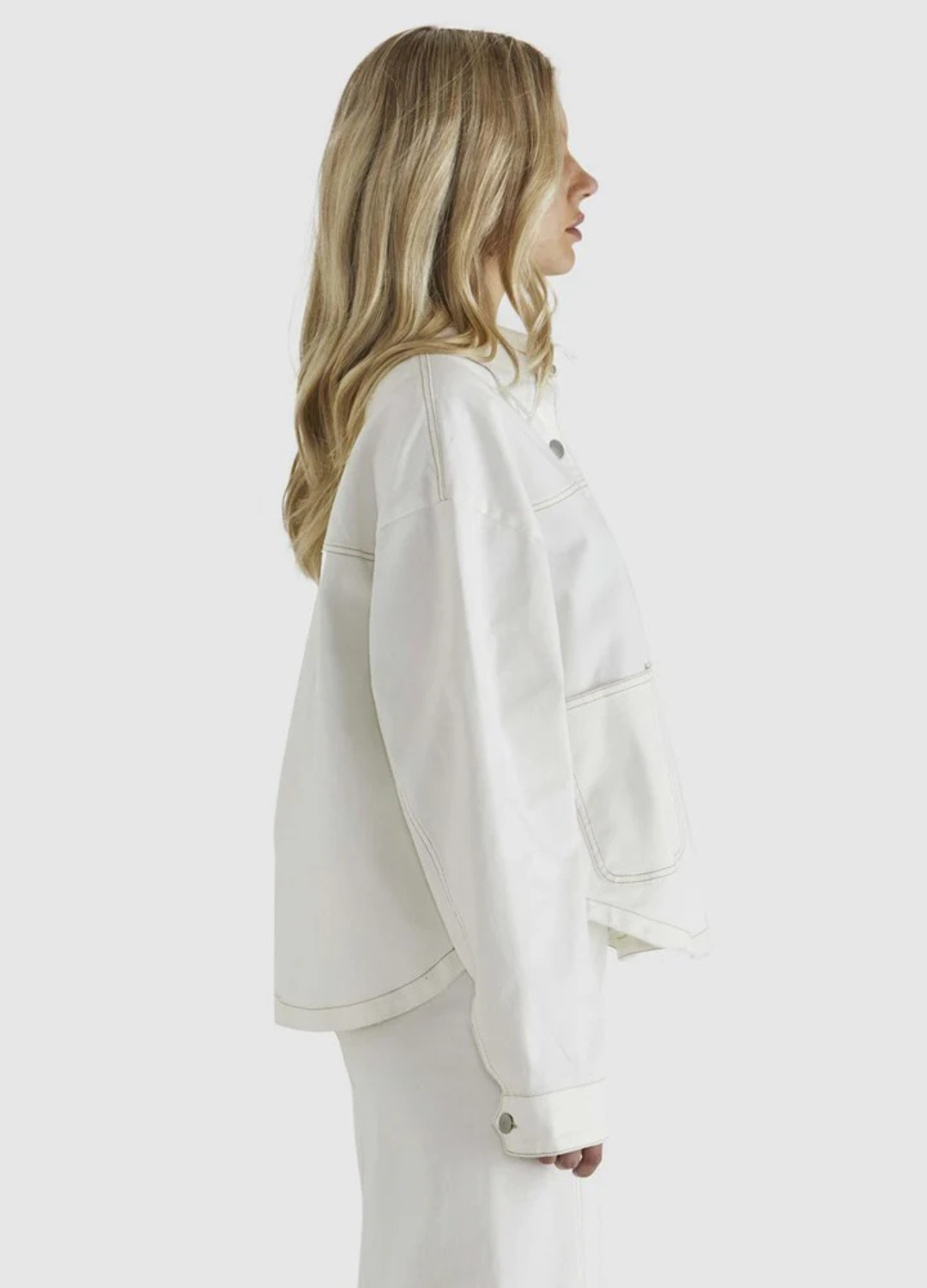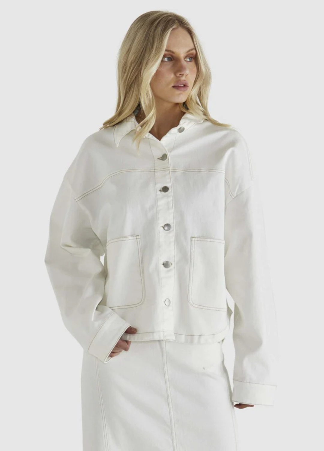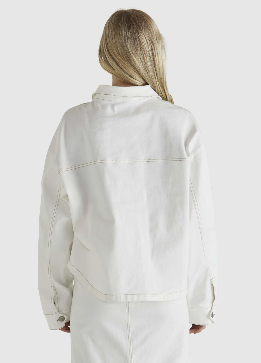 The Marza Jacket is a must-have for denim lovers. Featuring silver metal closures, front pockets, and a curved hem, this piece offers both structure and comfort. With a hint of stretch in the fabric, it’s perfect for layering over casual or elevated outfits.