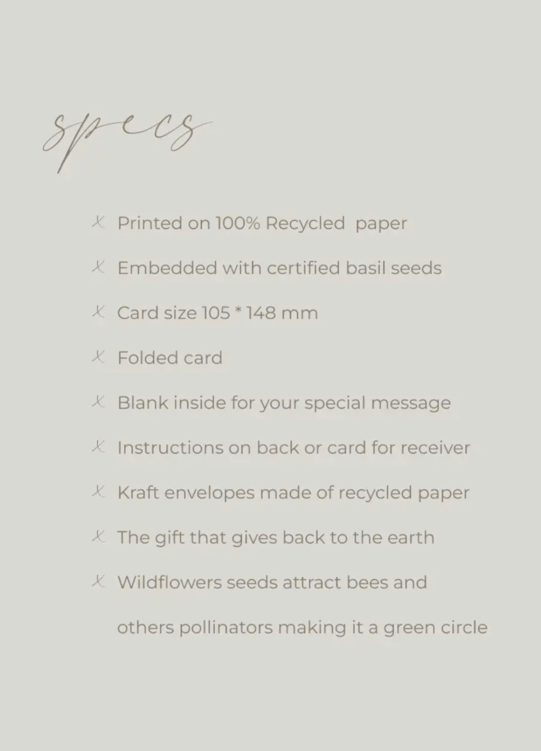 Add a touch of magic to your Christmas Gifts this year with our new collection of Plantable Xmas Cards. Crafted from recycled waste paper embedded with certified basil seeds, they’re the most eco-concious way to spread the Cheer all Year!