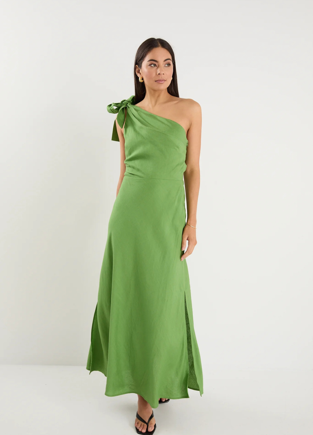 - One-shoulder with feminine tie detail
