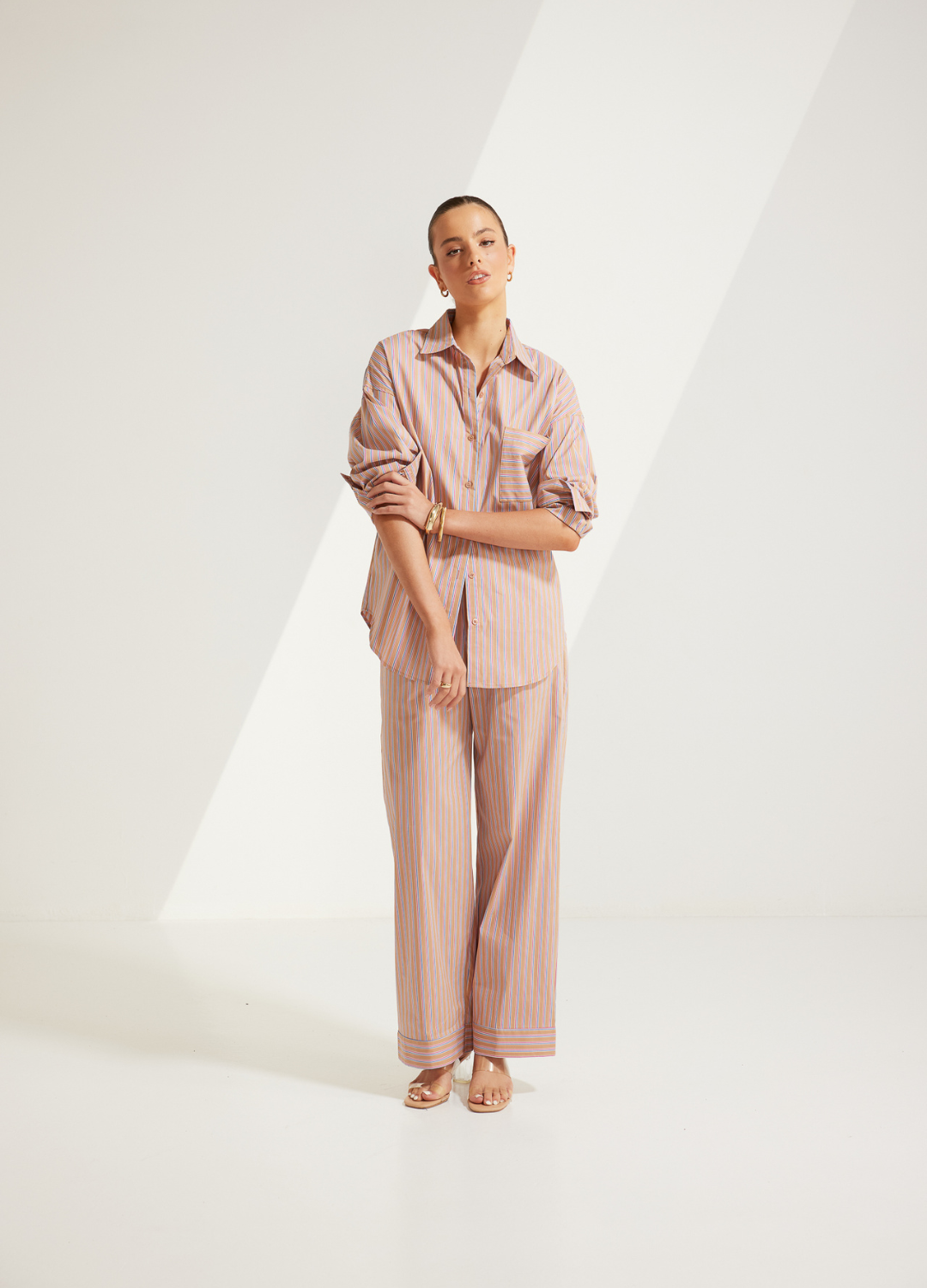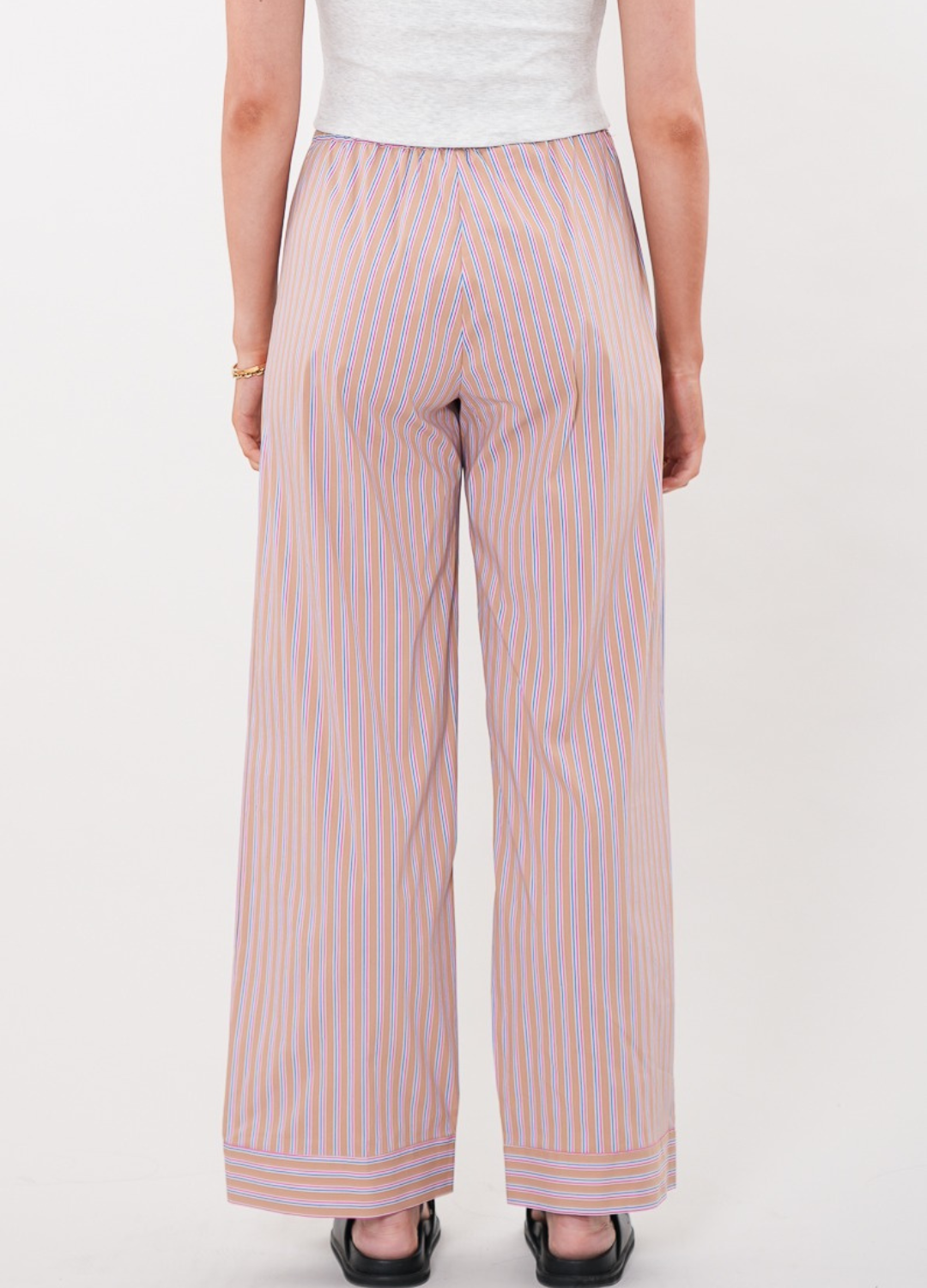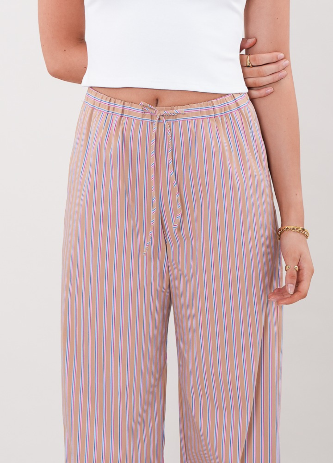 The Monti Boyfriend Pant is designed for ultimate comfort and style with a loose fit and a trendy, relaxed silhouette. Crafted from a soft cotton blend, these pants feature a unique brown base adorned with bold pink and blue striping, adding a playful yet sophisticated touch. The cuff seam at the ankle gives them a structured look, while the adjustable drawstring waist ensures a perfect fit. Ideal for pairing with a basic tee or your favorite casual top, these pants are the perfect go-to for laid-back days when you want both comfort and style.