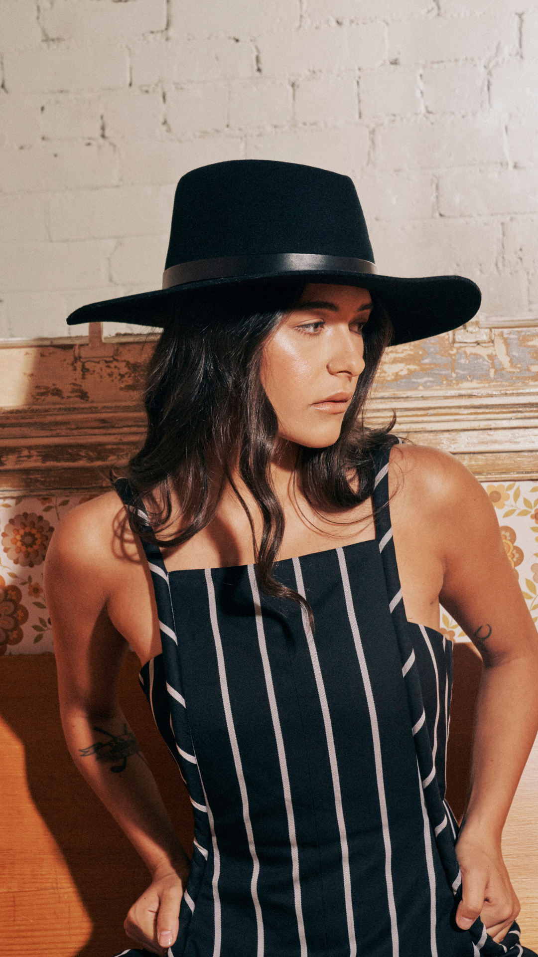The Nyx Fedora in Black combines a strong silhouette and a chunky trim, making for a go-to piece that can be easily styled across the seasons.