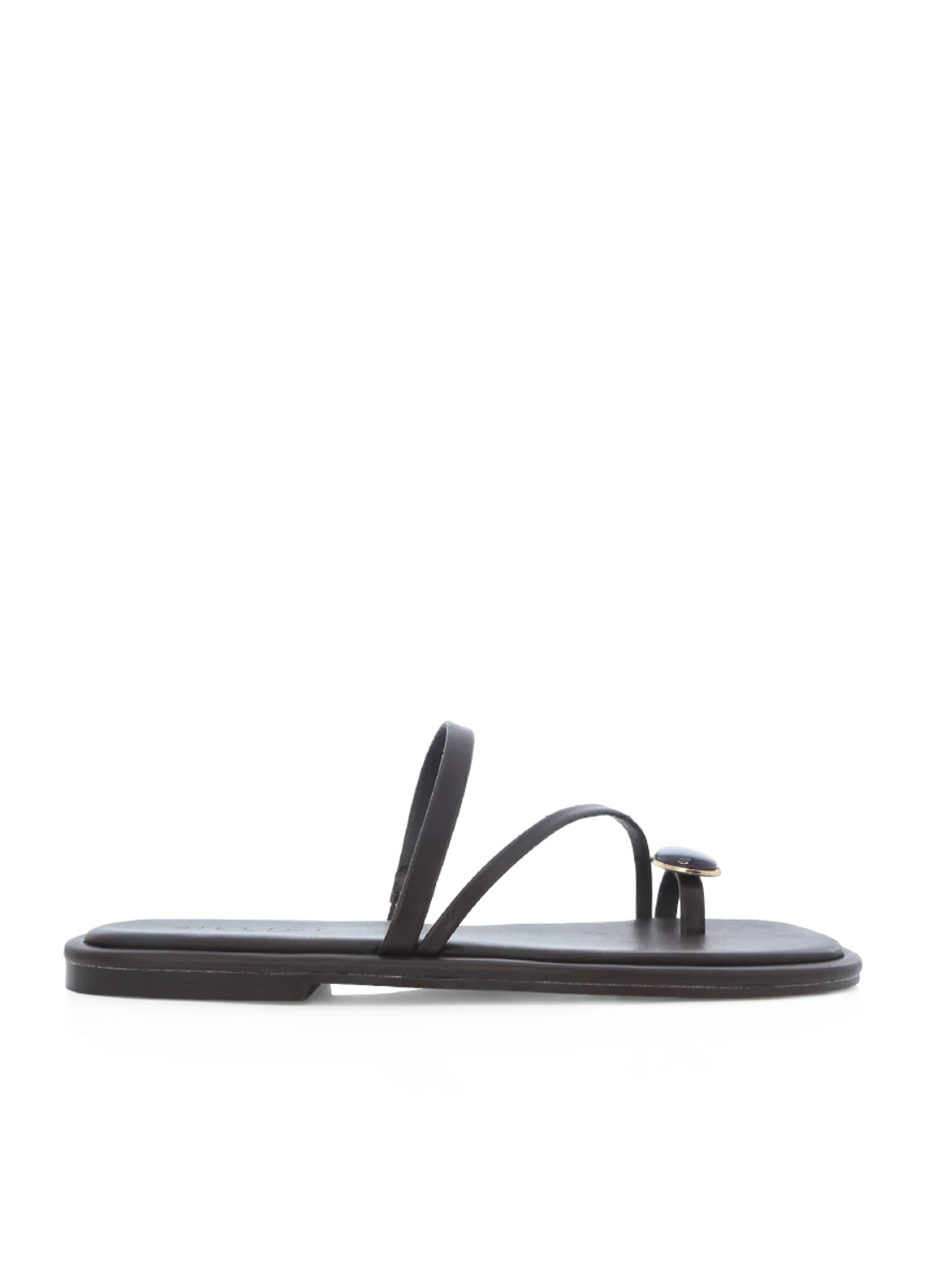 Chic sandals featuring a resin gem-accented toe ring and two stylish straps across the top of the foot for a modern, effortless look.