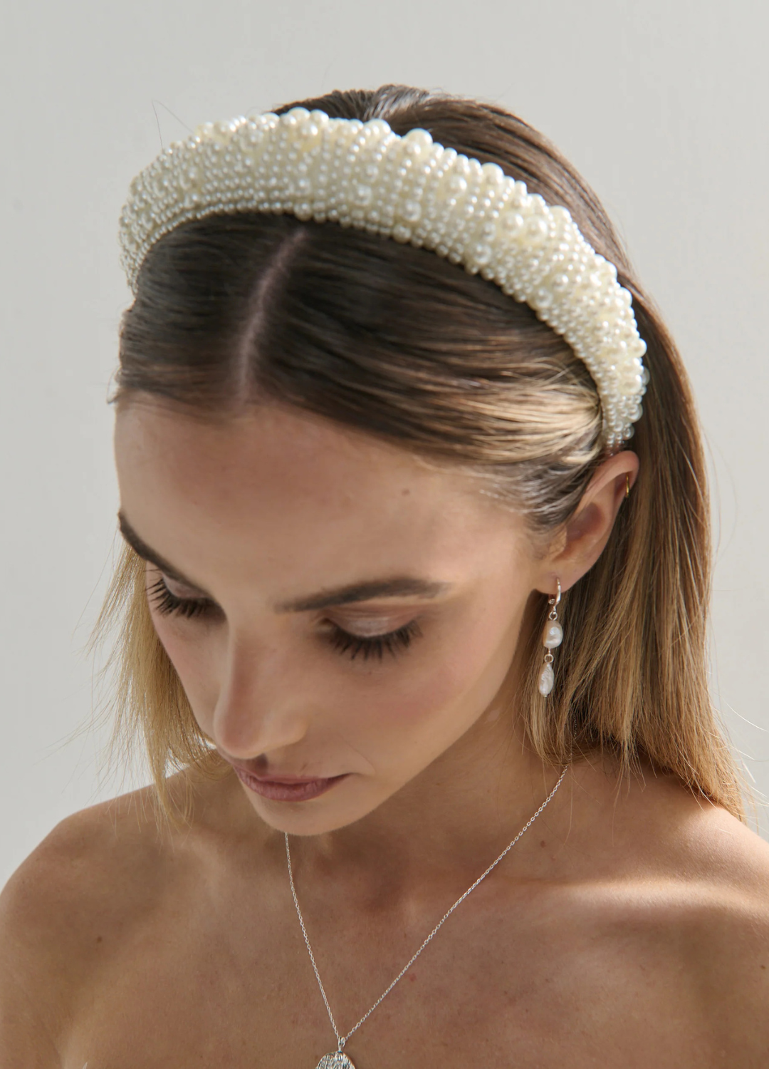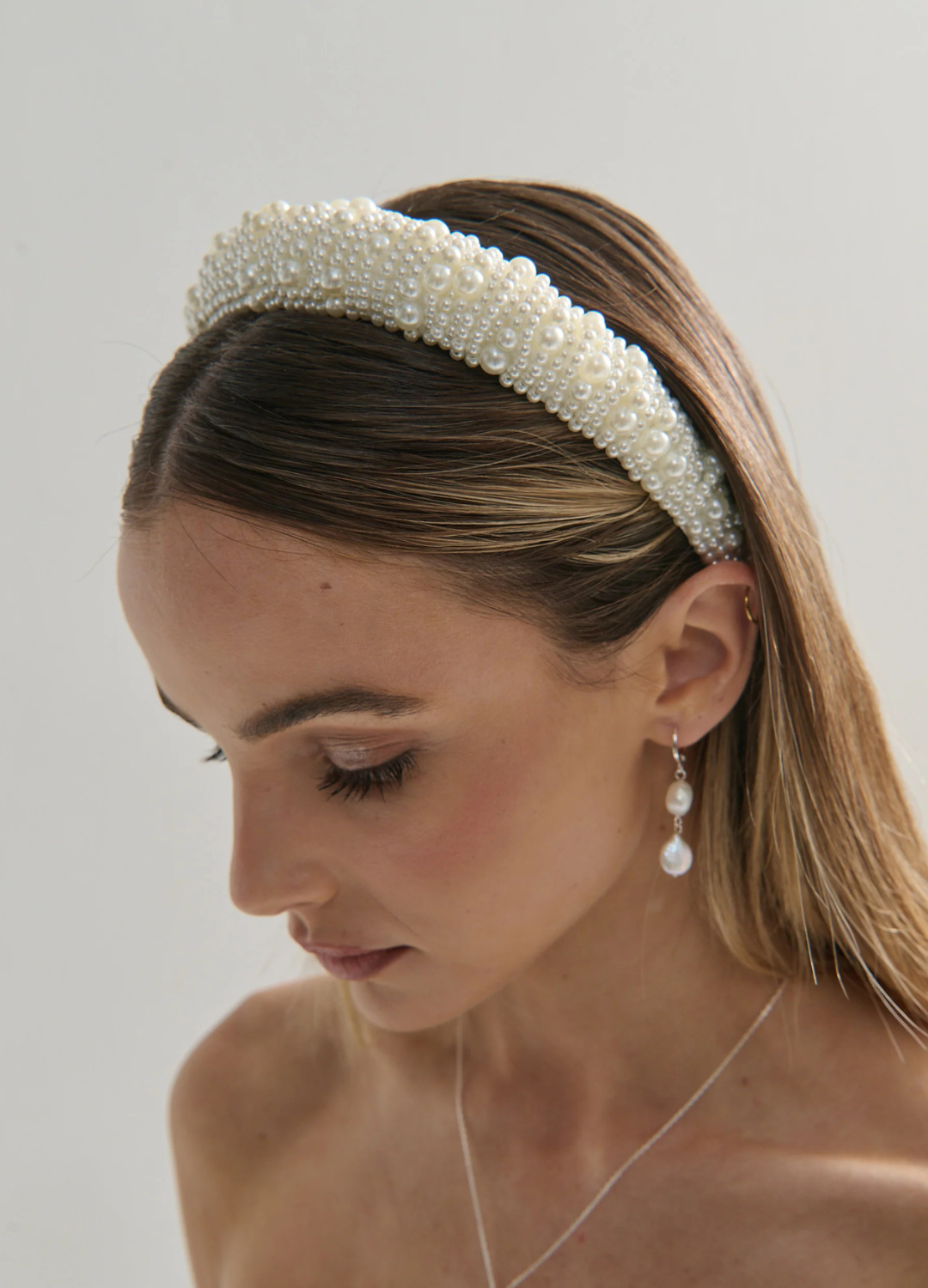 Dress to impress with the Pia Faux Pearl Statement Headband, an exquisite accessory crafted with pearls. Transform any look with that classic, timeless, and sophisticated touch. Perfect for bridal elegance or a standout piece for racing season, the Pia adds refined charm whether you're walking down the aisle or turning heads trackside.