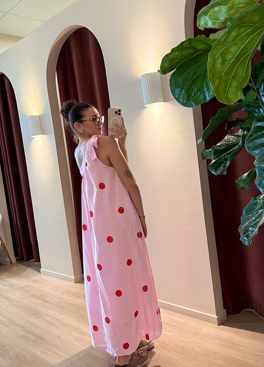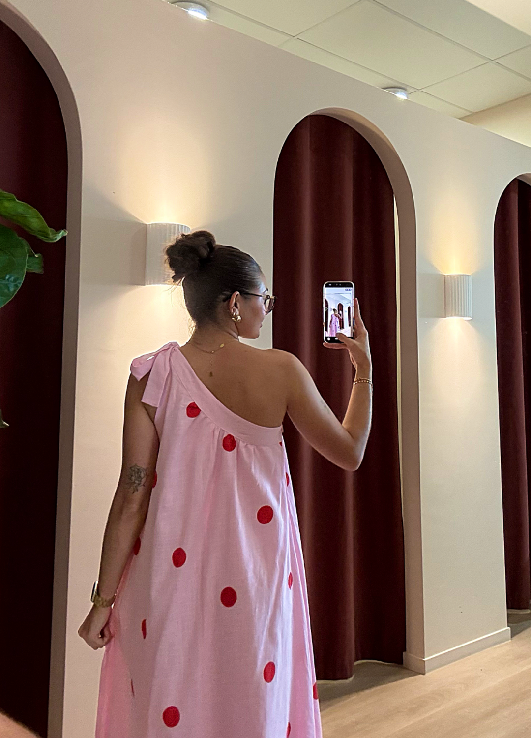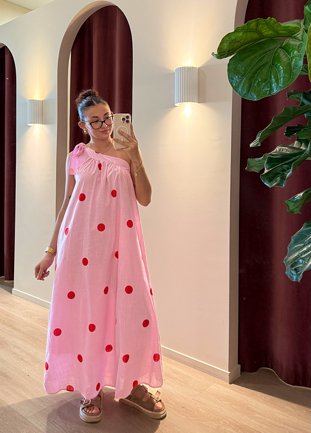 Bold colour meets effortless style in this pink and red spot one-shoulder maxi. The flattering one-shoulder cut adds modern edge, while the vibrant spot print brings a fun, feminine feel. Finished with a flowing maxi length for easy movement and all-day comfort.