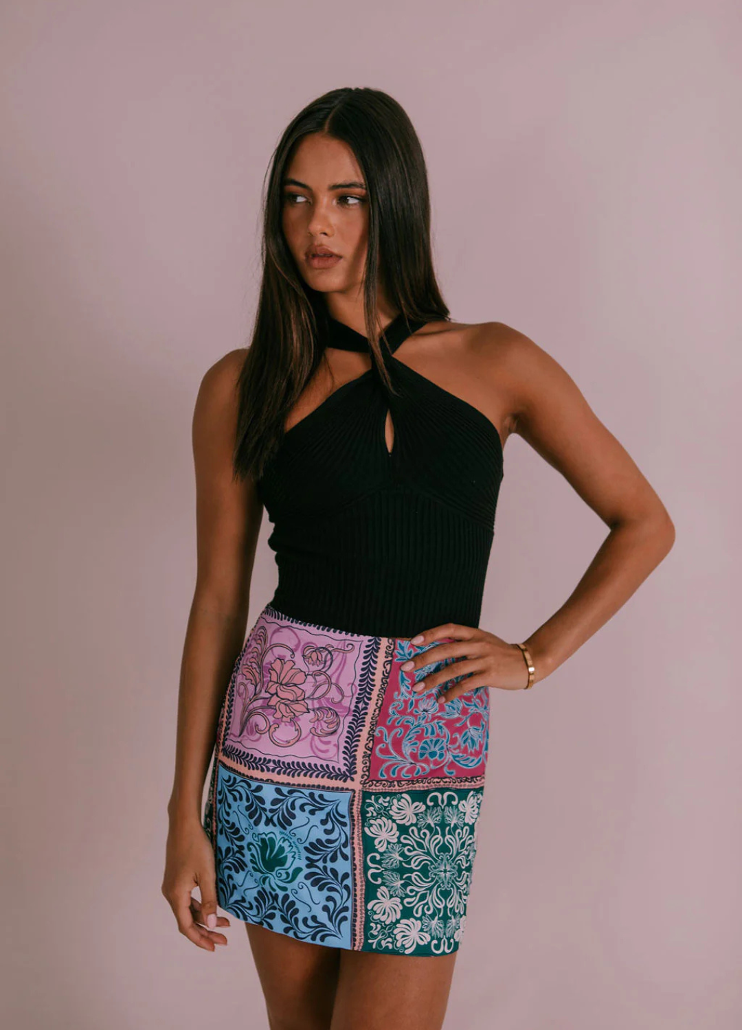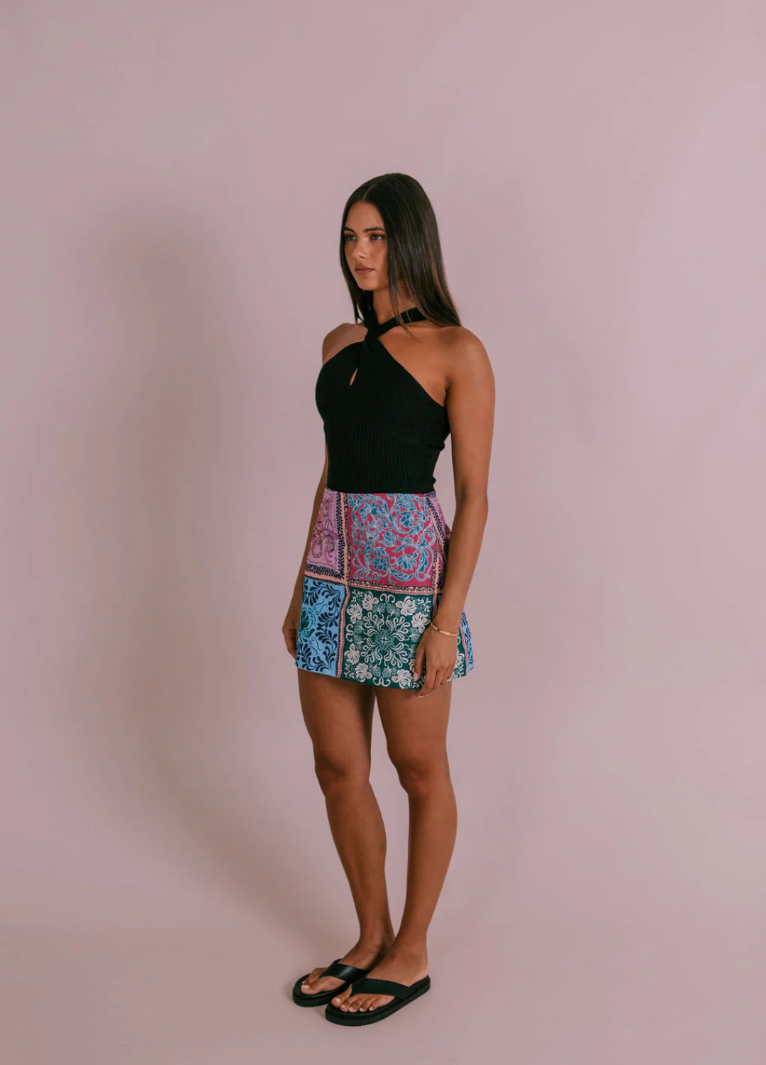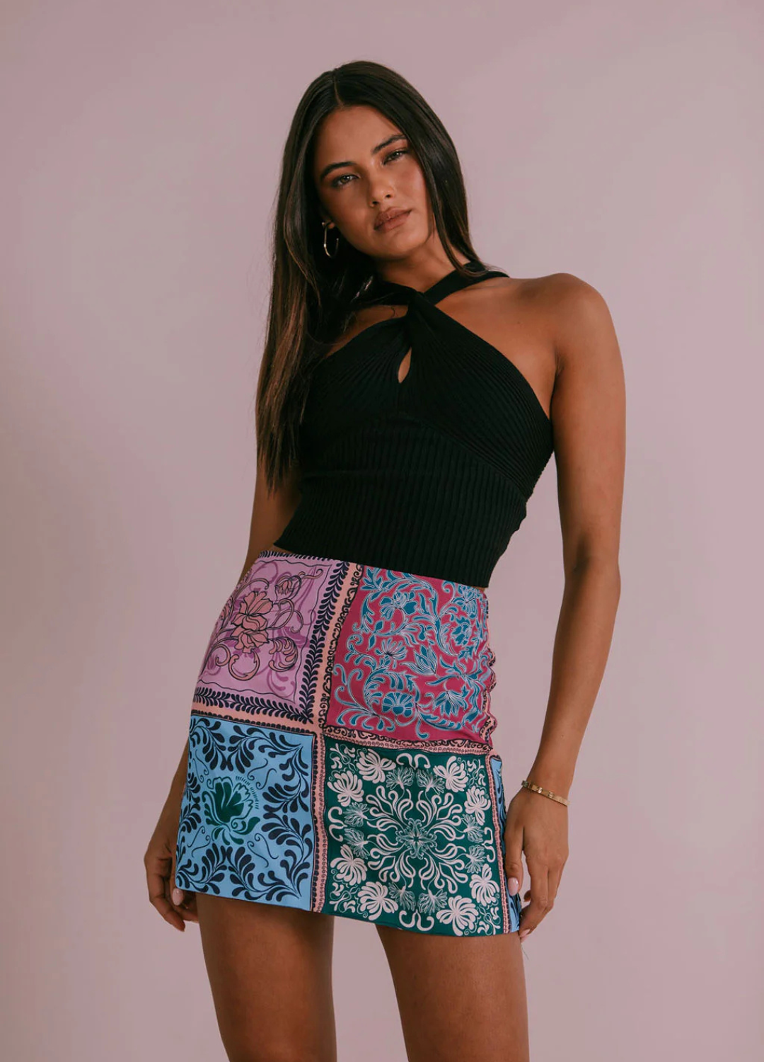 The Poet Mini Skirt in Paisley Tile is a vibrant and stylish addition to your wardrobe. Showcasing a Zella exclusive print in shades of green, lilac, teal, blue and peach, this mini skirt brings a playful yet chic touch to any look. Designed with an a-line silhouette and mid-waist fit, it offers both comfort and a flattering shape.