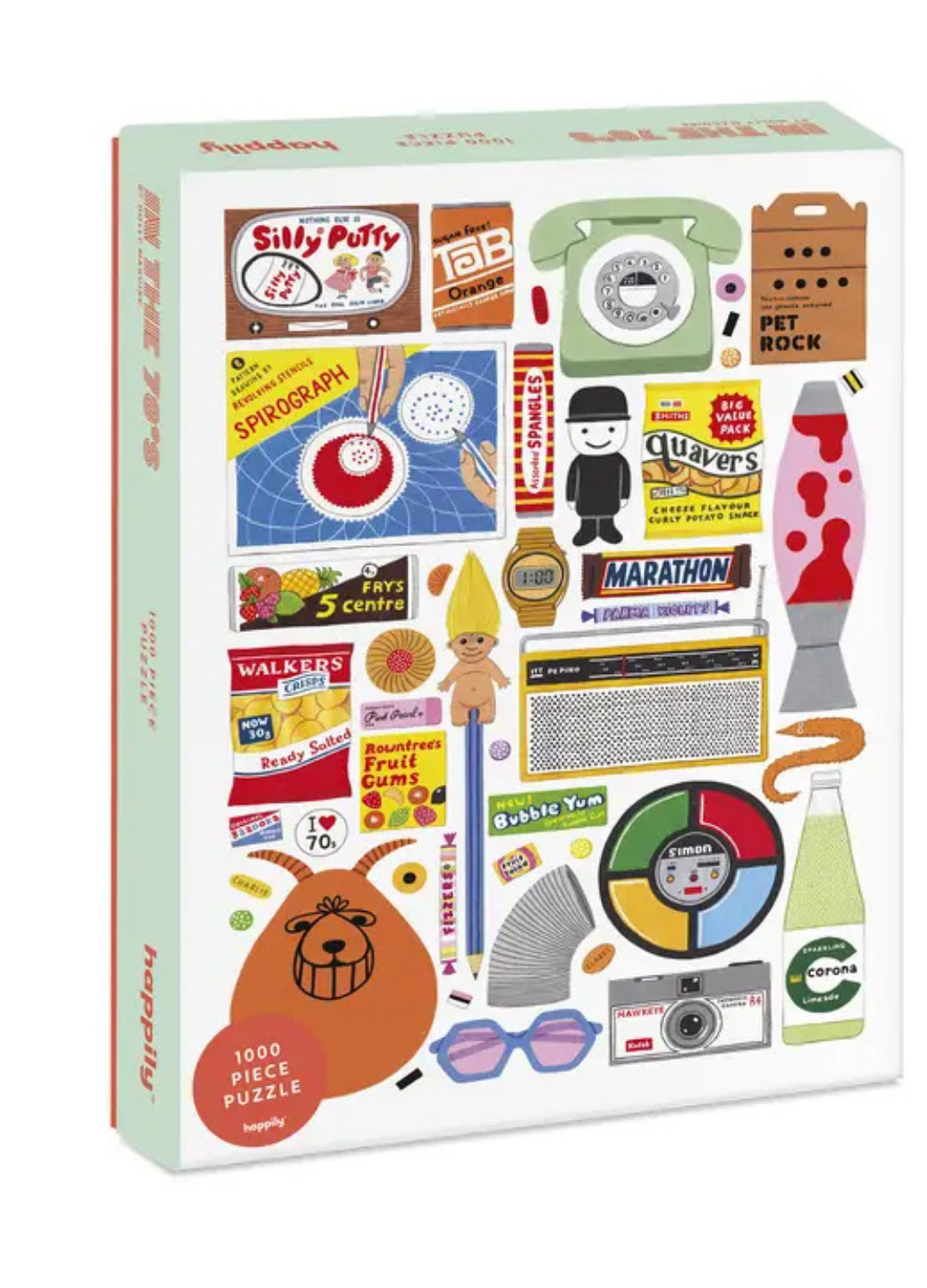1,000 piece puzzle featuring a fun illustration of 70’s nostalgia by Holly Maguire. The perfect gift for children of the 80s and retro lovers. - Made in the Netherlands, printed with vegetable-based ink using sustainably sourced high quality FSC paper and 100% recycled board.