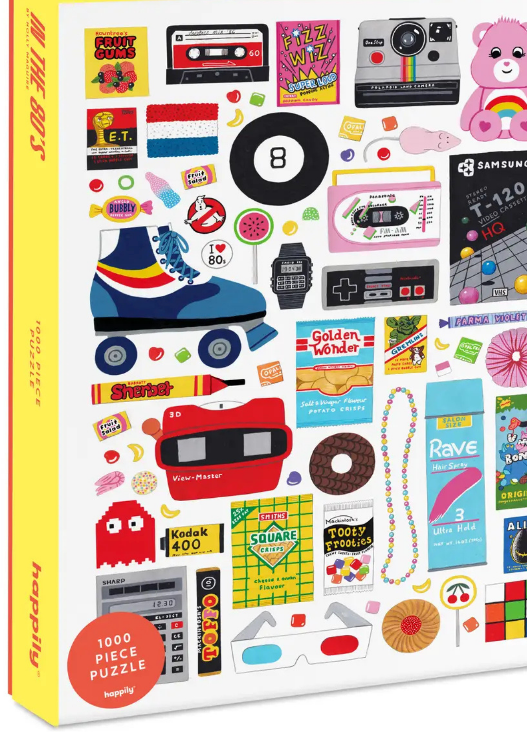 1,000 piece puzzle featuring a fun illustration of 80’s nostalgia by Holly Maguire. The perfect gift for children of the 80s and retro lovers. - Made in the Netherlands, printed with vegetable-based ink using sustainably sourced high quality paper and 100% recycled board.