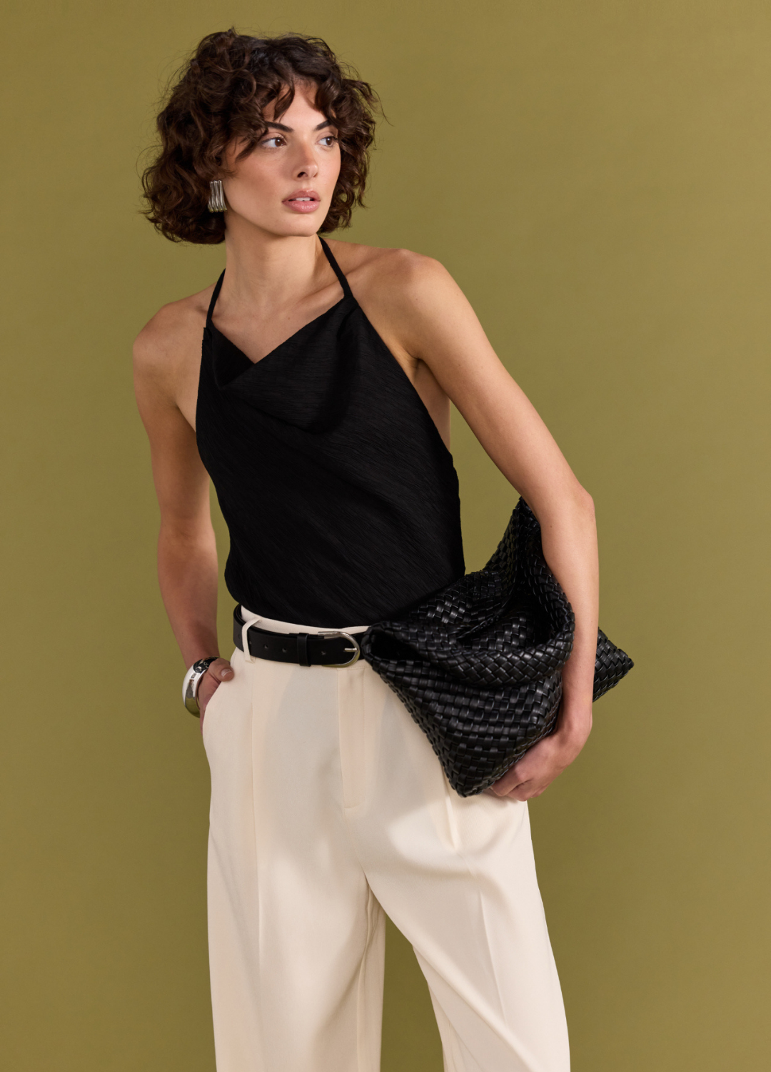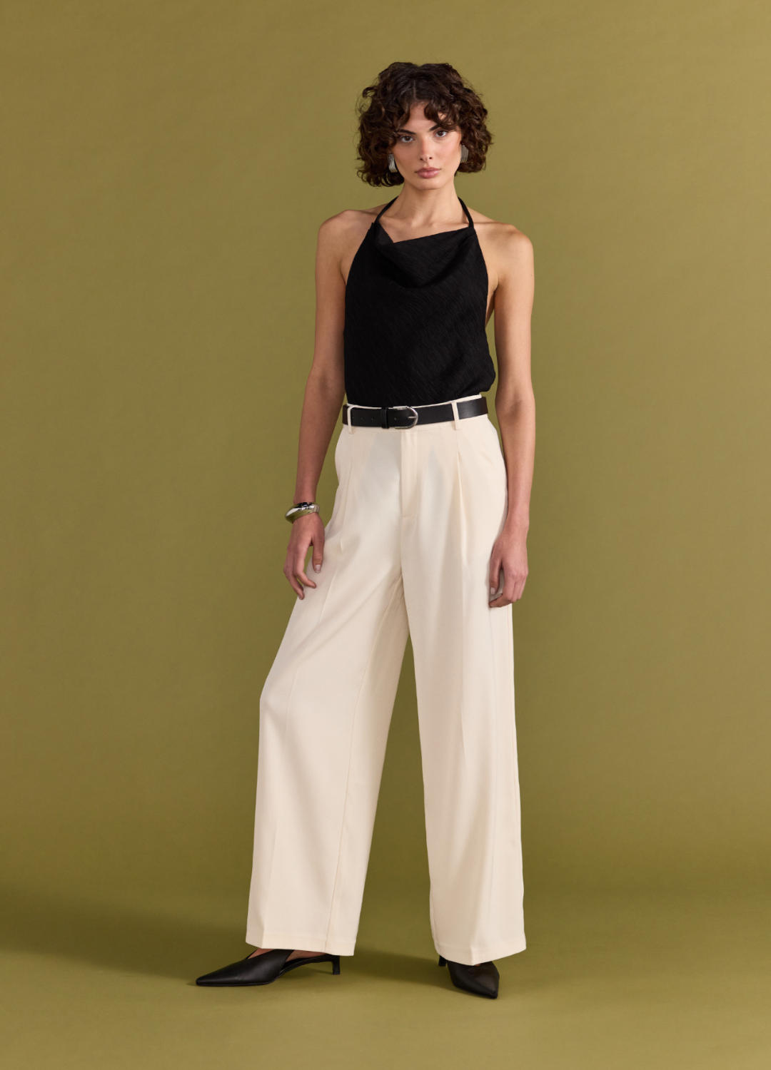 The Sabine Wide Leg Pants are a timeless addition to any wardrobe. Featuring a relaxed silhouette, and neutral cream wash. Style yours with the matching Sabine Trench Coat to complete the effortlessly chic look.
