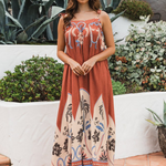 Sherrie Maxi Dress is a bohemian-style maxi dress with a relaxed, flowy silhouette. Casual, comfortable, and stylish great for a beach vacation, summer outing, or tropical getaway.