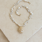 Handmade at the edge of the Great Barrier Reef, the Siren Necklace carries a quiet nod to the sea’s mythology — to the stories once told by sailors of treasures found beneath the waves. Strung with SunVoyager’s signature high-lustre freshwater pearls and finished with a natural pearled shell pendant, it reflects the allure of the deep and the mystery of what drifts to shore.