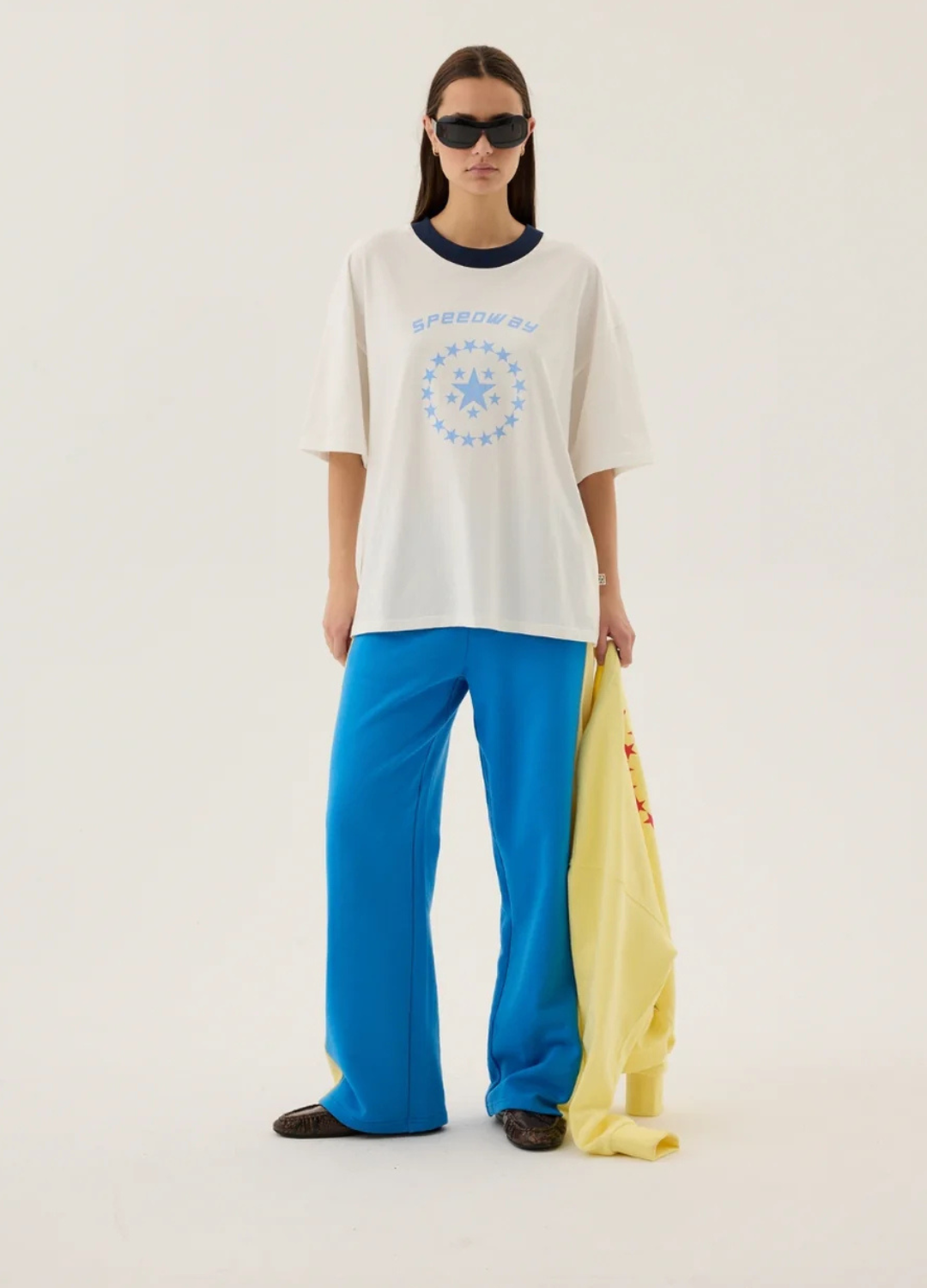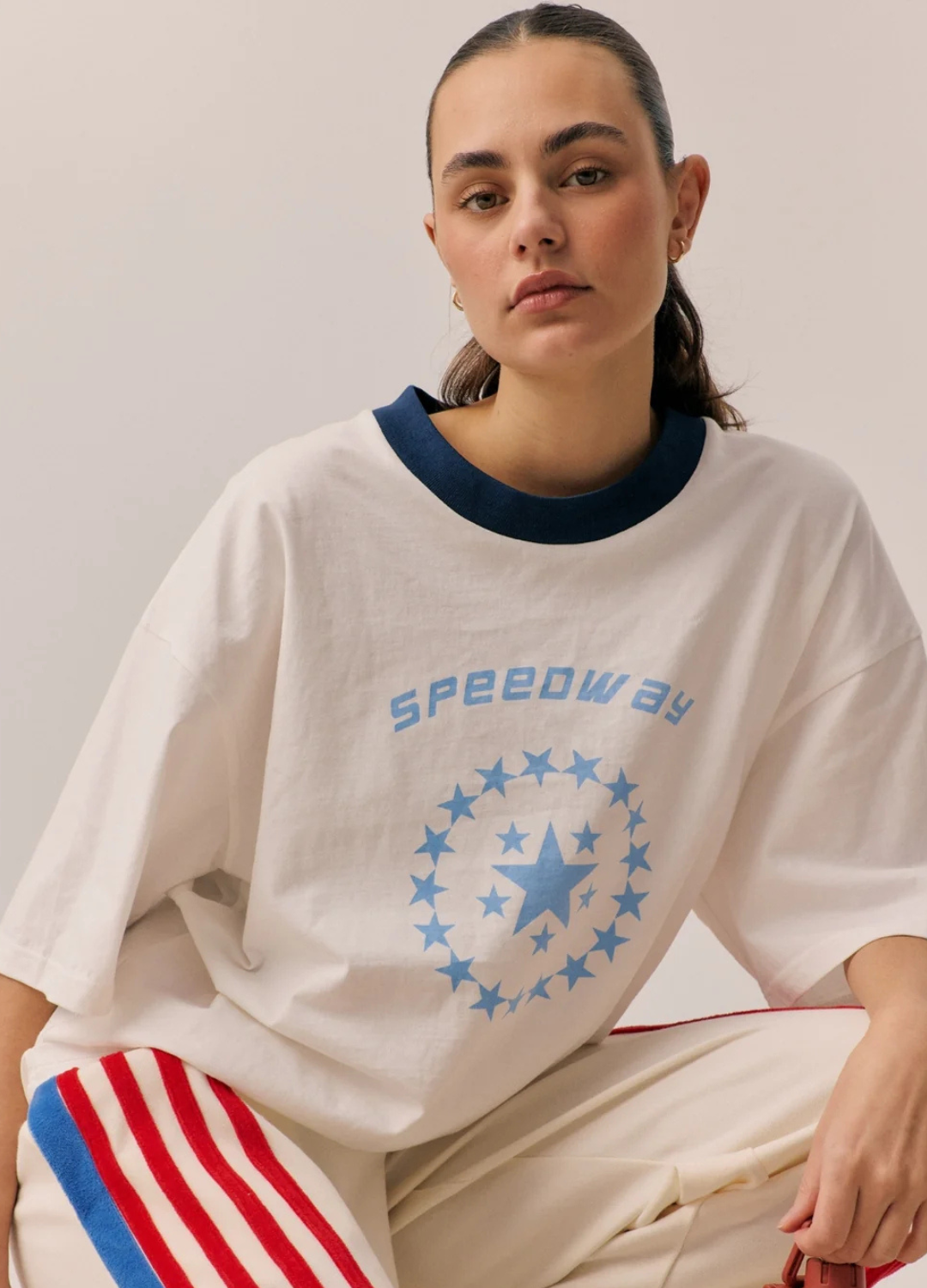 The Speedway Oversized Tee in Snow is made from 100% luxurious soft cotton, and features a contrasting round neckline and printed graphic on the front. Designed in an oversized, relaxed fit, this tee is meant to be worn generously, offering a casual, effortless style that feels just as comfortable as it looks. Pair back with our Stripe Sports Sheen Pant in Snow for effortless everyday style.