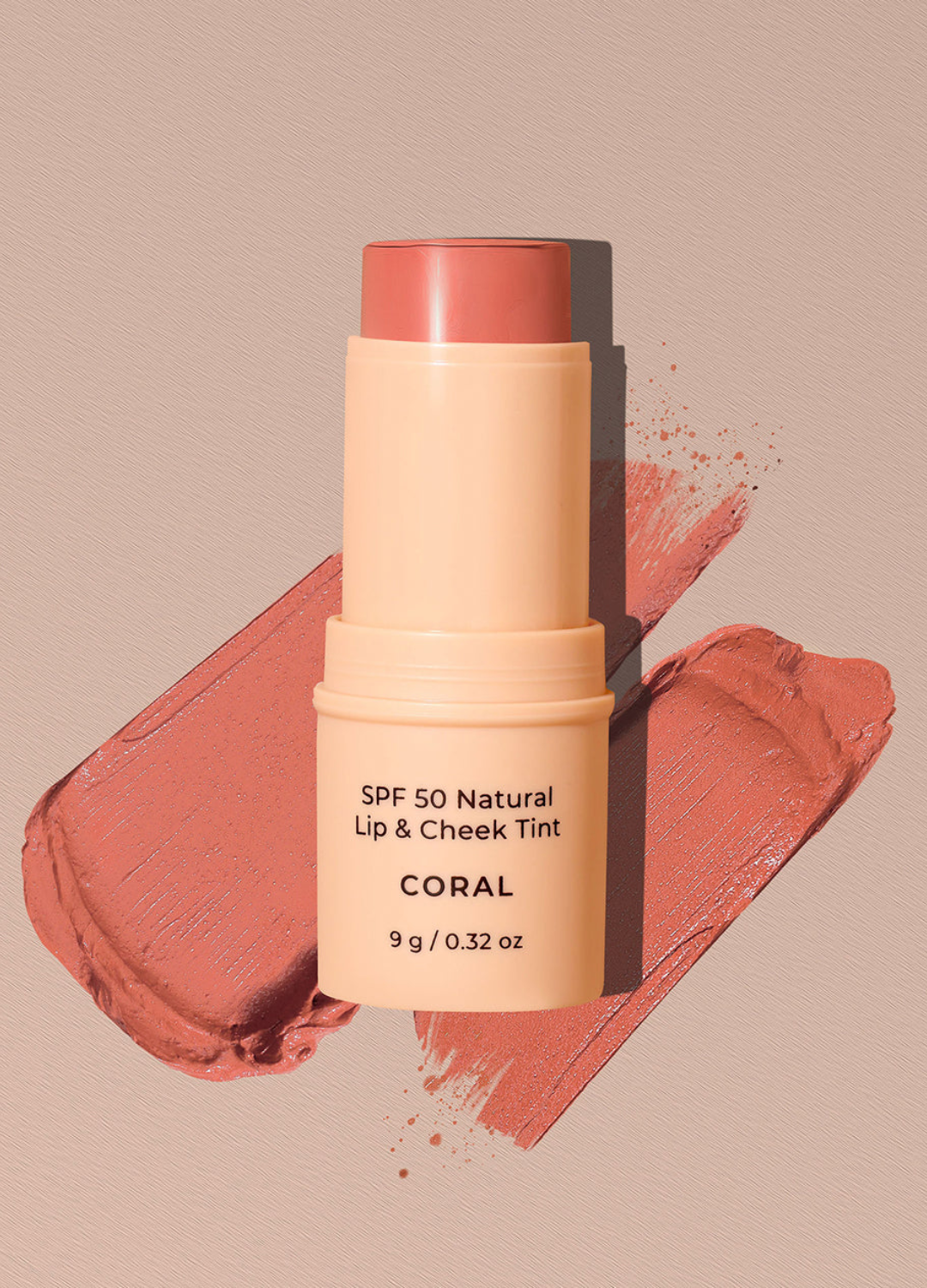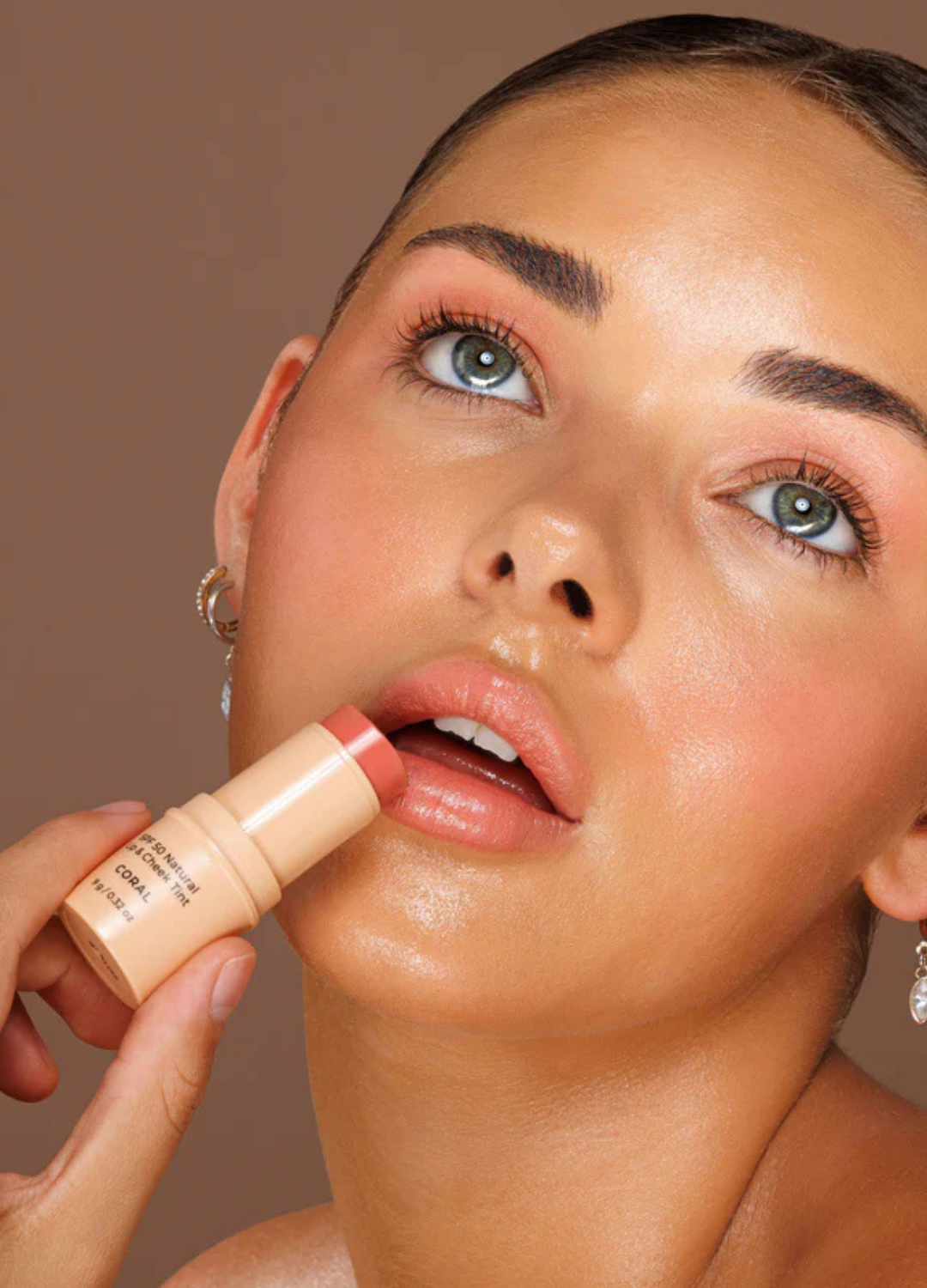 Introducing the SPF 50 Natural Lip & Cheek Tint. This multi-purpose beauty stick acts as your lip balm, lipstick, blush, eye shadow and SPF all in one. Enriched with Avocado Oil, Shea Butter, Castor Oil & Vitamin E, this everyday beauty essential will give your complexion a boost of colour, hydration and sun protection.
