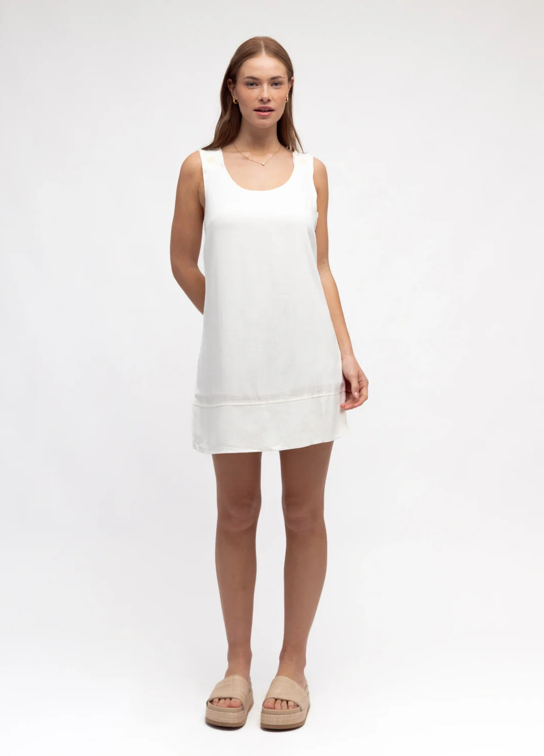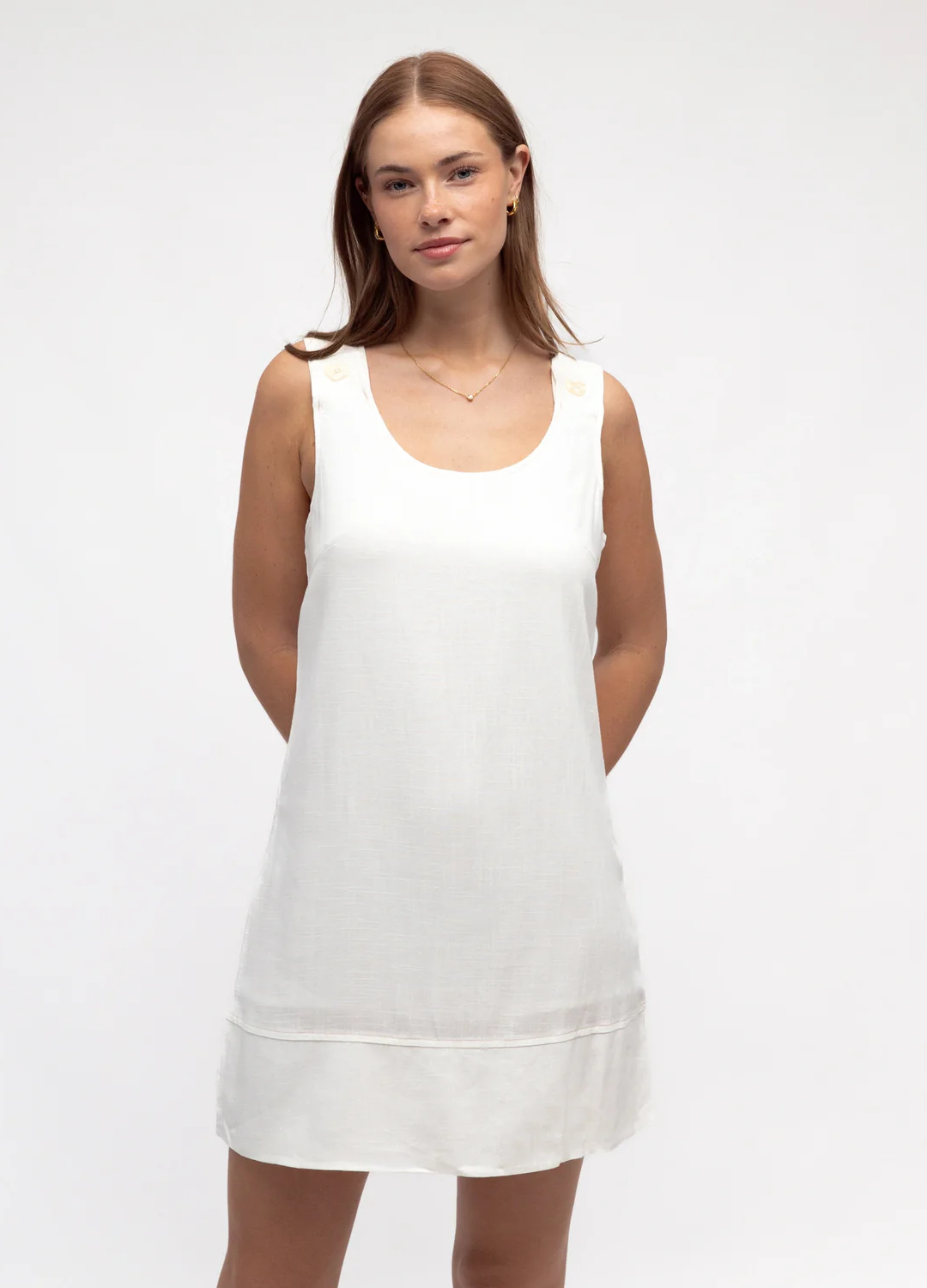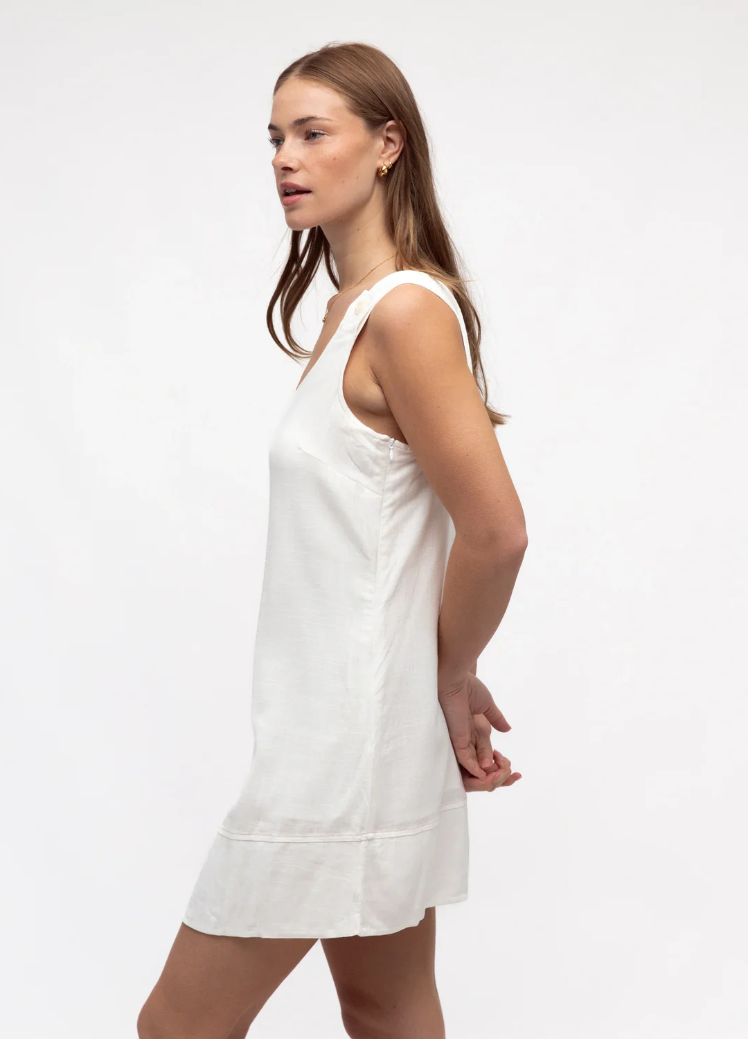 ∙ Square neckline∙ Thick straps detail∙ Button fastening∙ Side zipper∙ A line shape∙ Mini length∙ Relaxed Fit