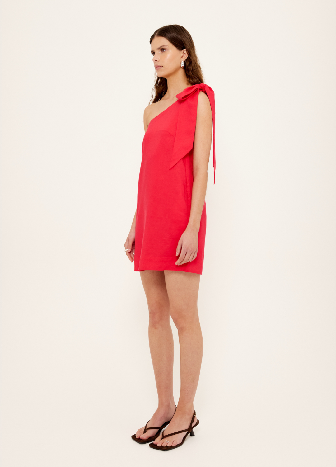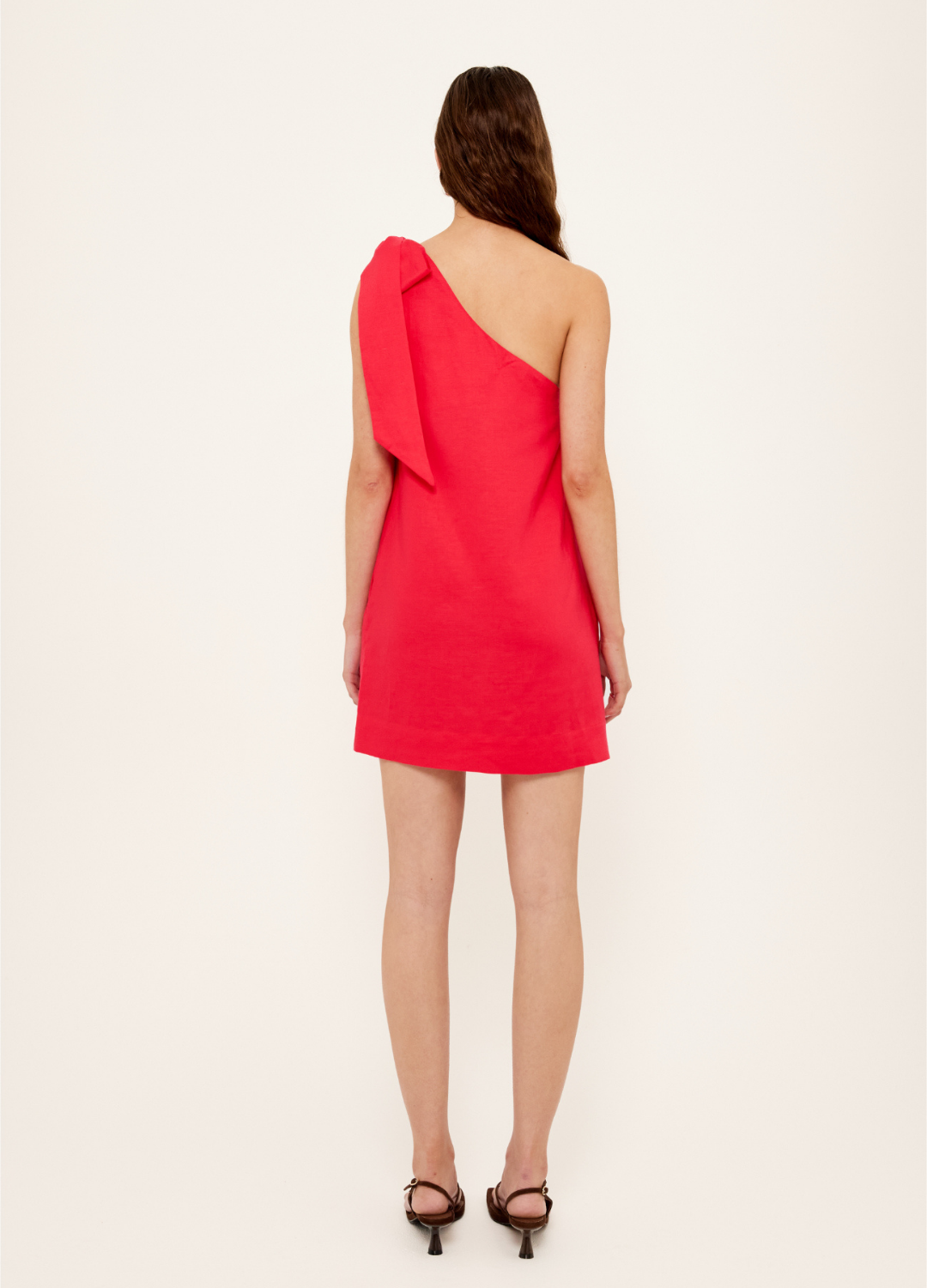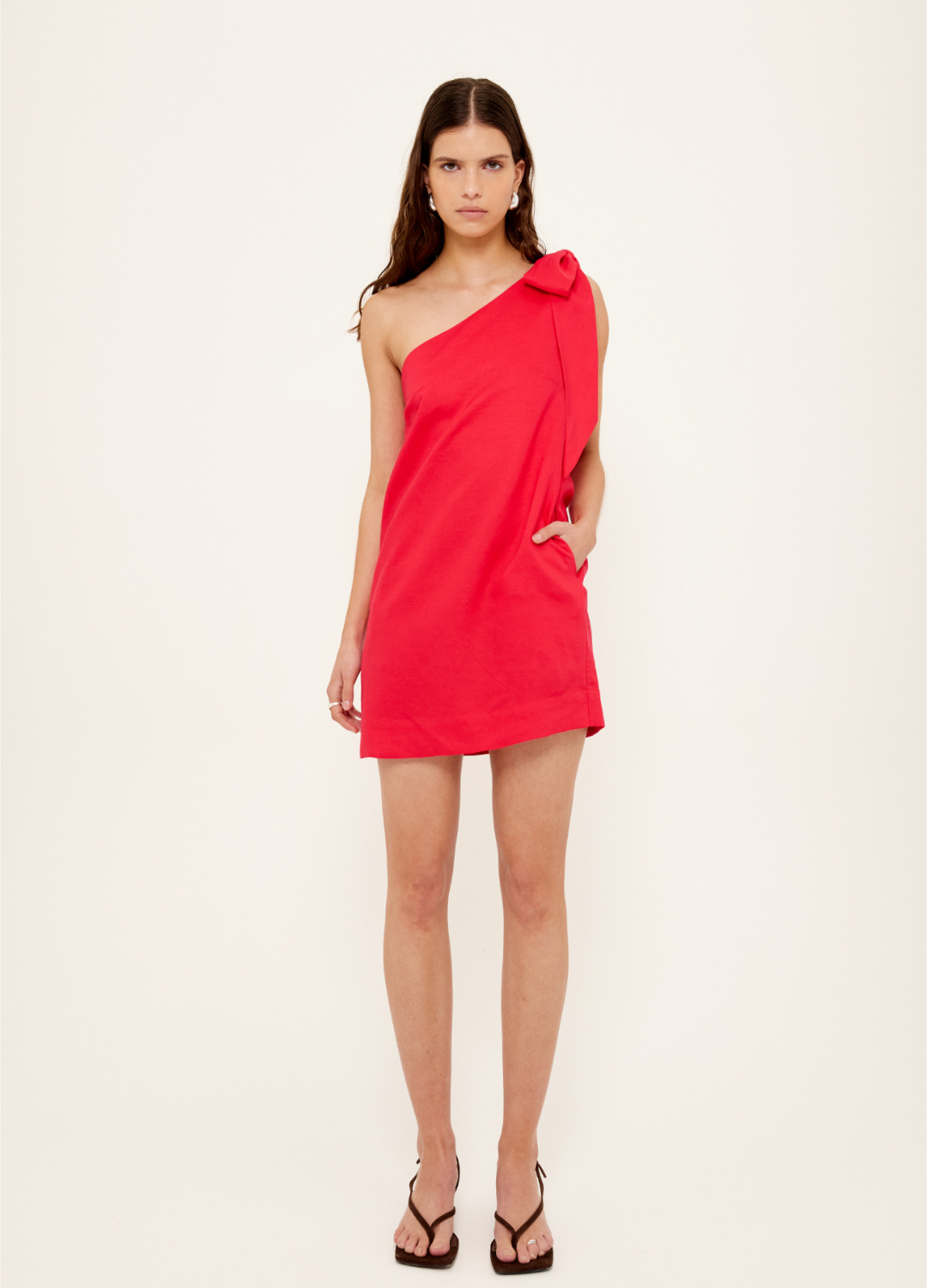 Make a bold yet effortless statement in the Valentina One Shoulder Dress. Crafted from a soft and breathable Tencel-linen blend, this mini features an asymmetric neckline with an oversized shoulder tie for a modern, feminine finish.