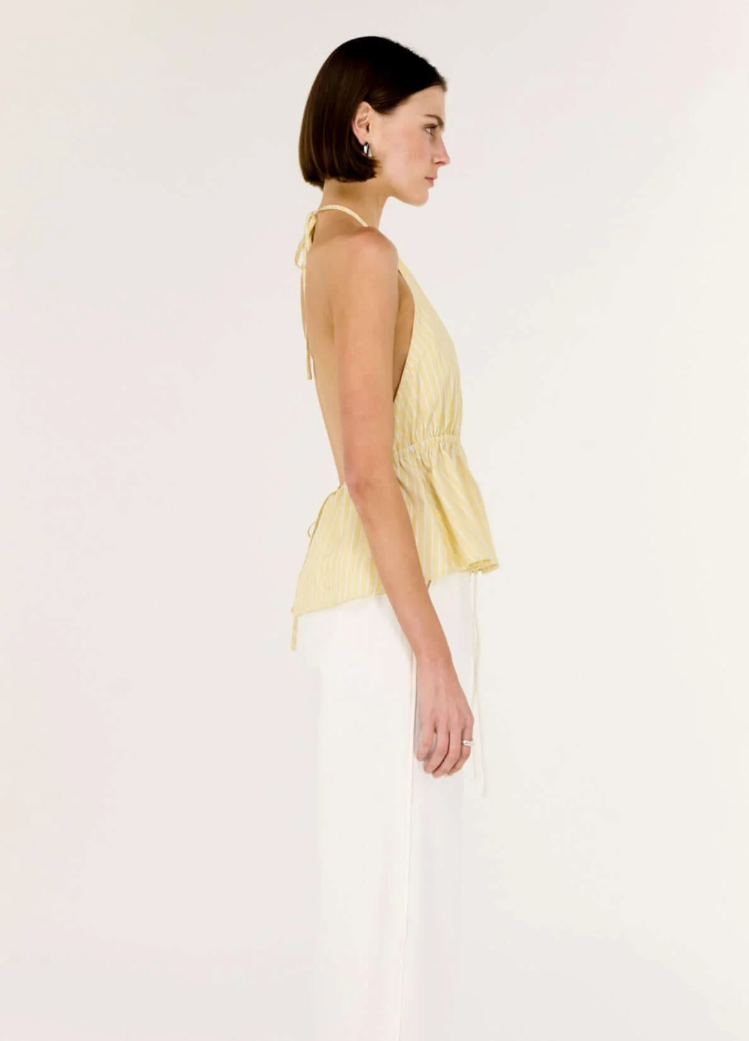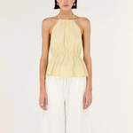 The Zeno Halter Top is a refined warm-weather staple featuring a flattering halter neckline and open back for a modern, feminine silhouette. Crafted from lightweight polyester with a soft cotton lining, it’s finished with subtle stripe detailing and a gently cinched waist for effortless shape.